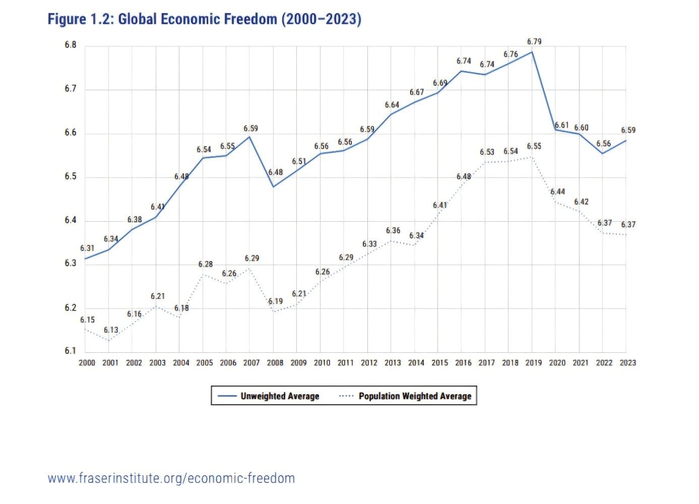 Ekonomická sloboda globálne klesla z vrcholu v roku 2019, ovplyvnená pandémiou, vojnami, infláciou a protekcionizmom. Autori správy varujú, že pokles ekonomickej slobody vedie k nižšiemu hospodárskemu rastu, chudobe a horšej kvalite života. “Ekonomická sloboda je kľúčom k prosperite, ale v nepredvídateľnom svete ju ohrozujú rastúce regulácie a obchodné bariéry,” uviedol Robert Lawson, spoluautor správy.