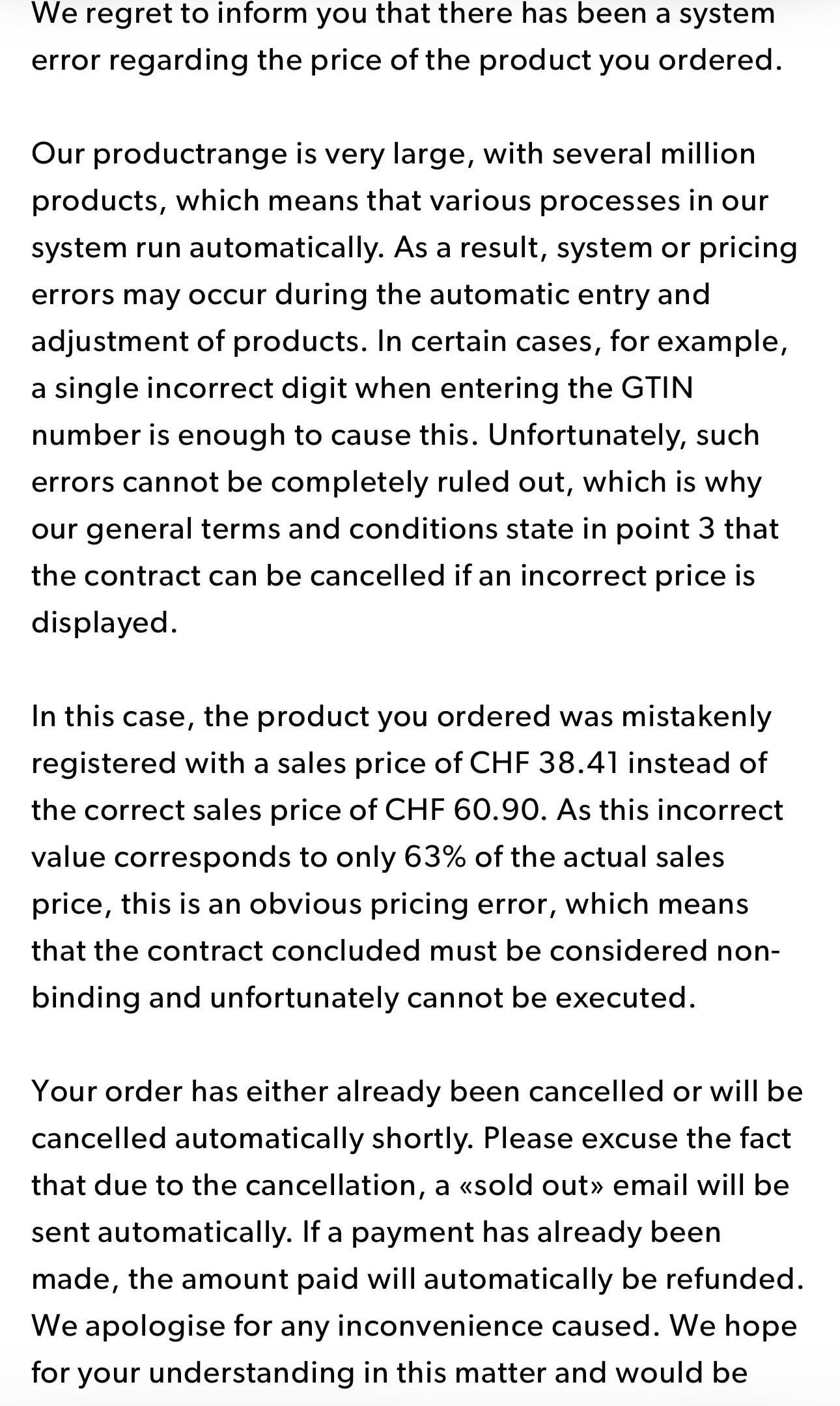 I wonder how many they sold because the admin cost of arguing about a few chfs is greater than just fulfilling the orders…