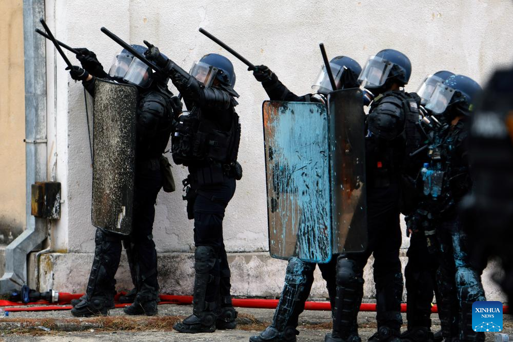 French riot policemen participate at the “Carpathian Blue Shield 2025” international exercise at the Gendarmerie Training Center in Ochiuri village, north of Bucharest, Romania, Sept. 25, 2025. Over 500 riot policemen from Romania and other European countries participated at the drill. (Photo by Cristian Cristel/Xinhua)