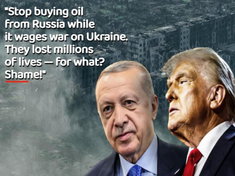“Millions died — and for what? I want Erdoğan to stop buying oil from Russia while it wages war on Ukraine. Shame,” Trump said.