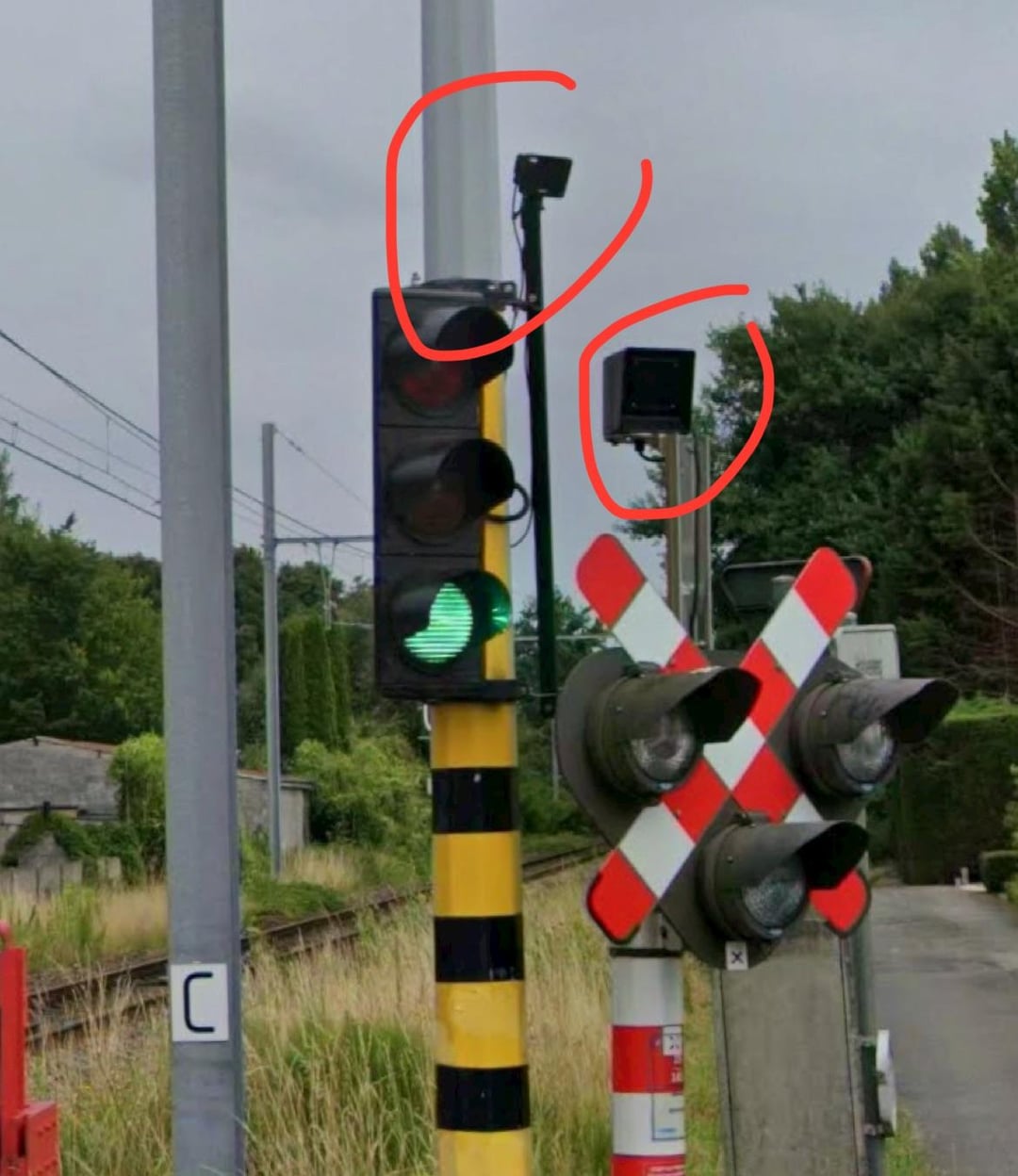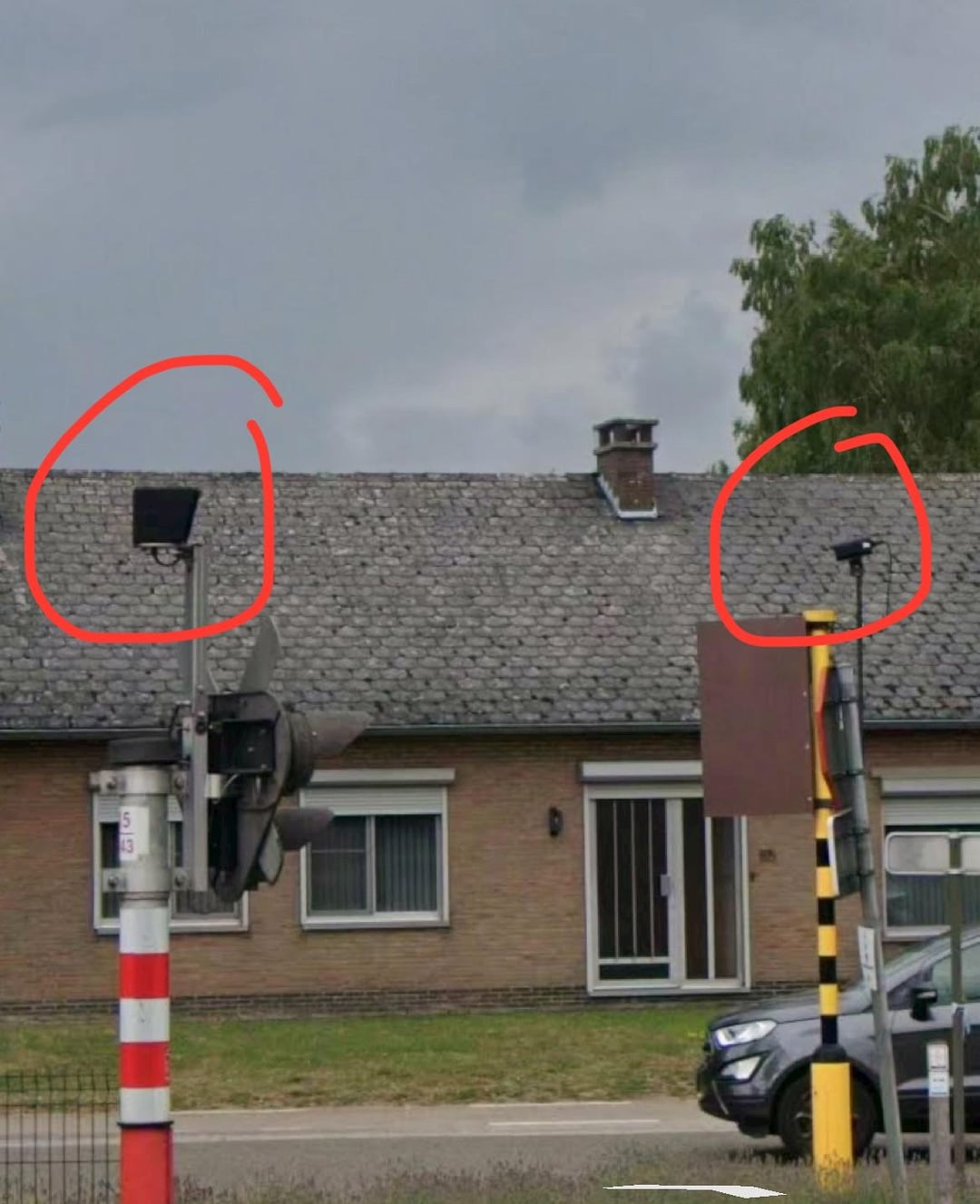 Maybe a traffic camera the smaller one does look like a red light camera. So your license plate gets shot when you run a red light. Would make sense since a heap of idiotic drivers decide to floor it when the lights turn red at a railroad crossing before the “slagbomen” go down (forgot the English word)