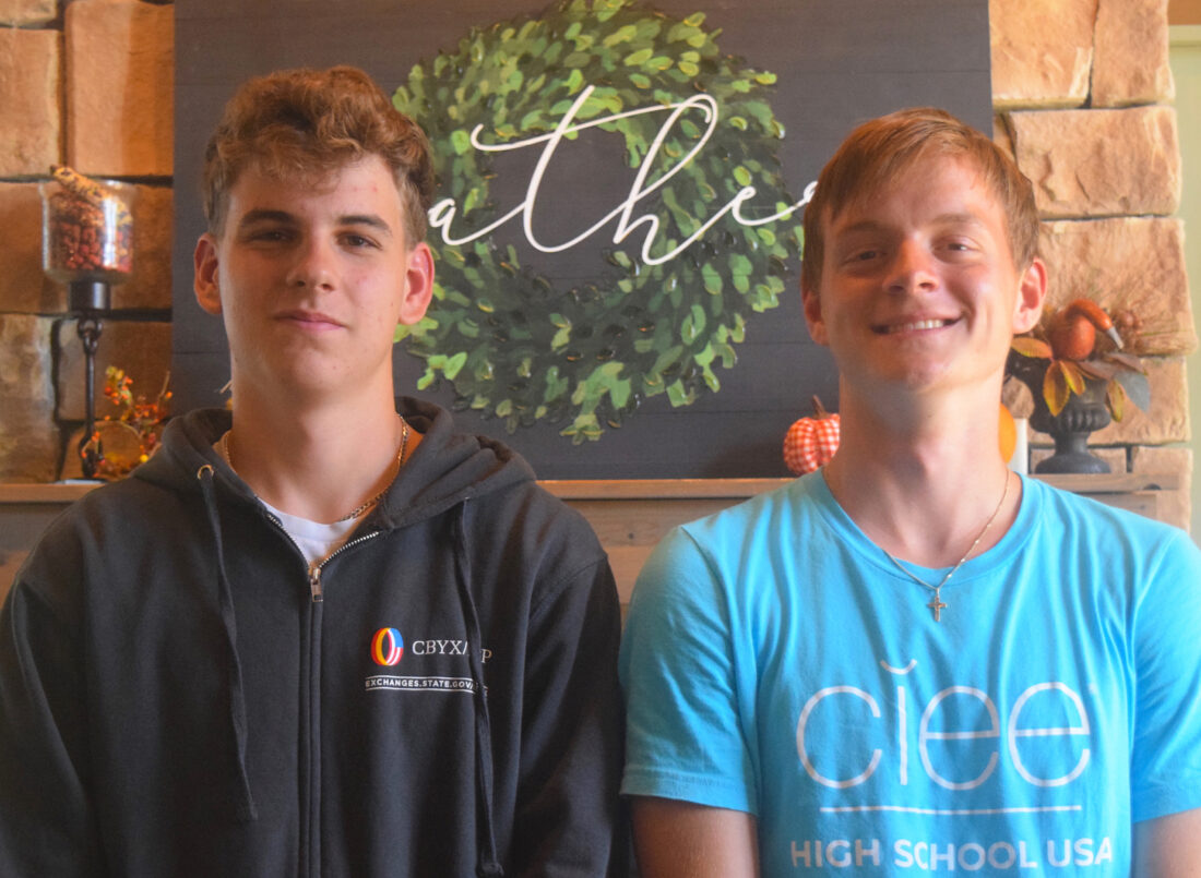ABOVE: Thomas Hamlet, left, of Fairmont, has returned after a 10-month school year in Rheinbach, Germany, where he immersed himself in rich German culture, language and academics. Jonas Krist, right, from Germany, has arrived in Fairmont to advance his own studies and abroad experience as a junior at Fairmont High School, while the Hamlet family hosts him. Both students’ opportunities are part of the CIEE Congress-Bundestag Youth Exchange (CBYX) program.