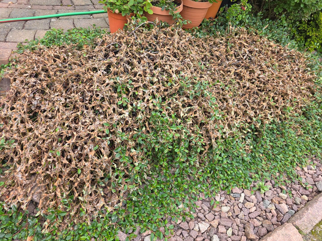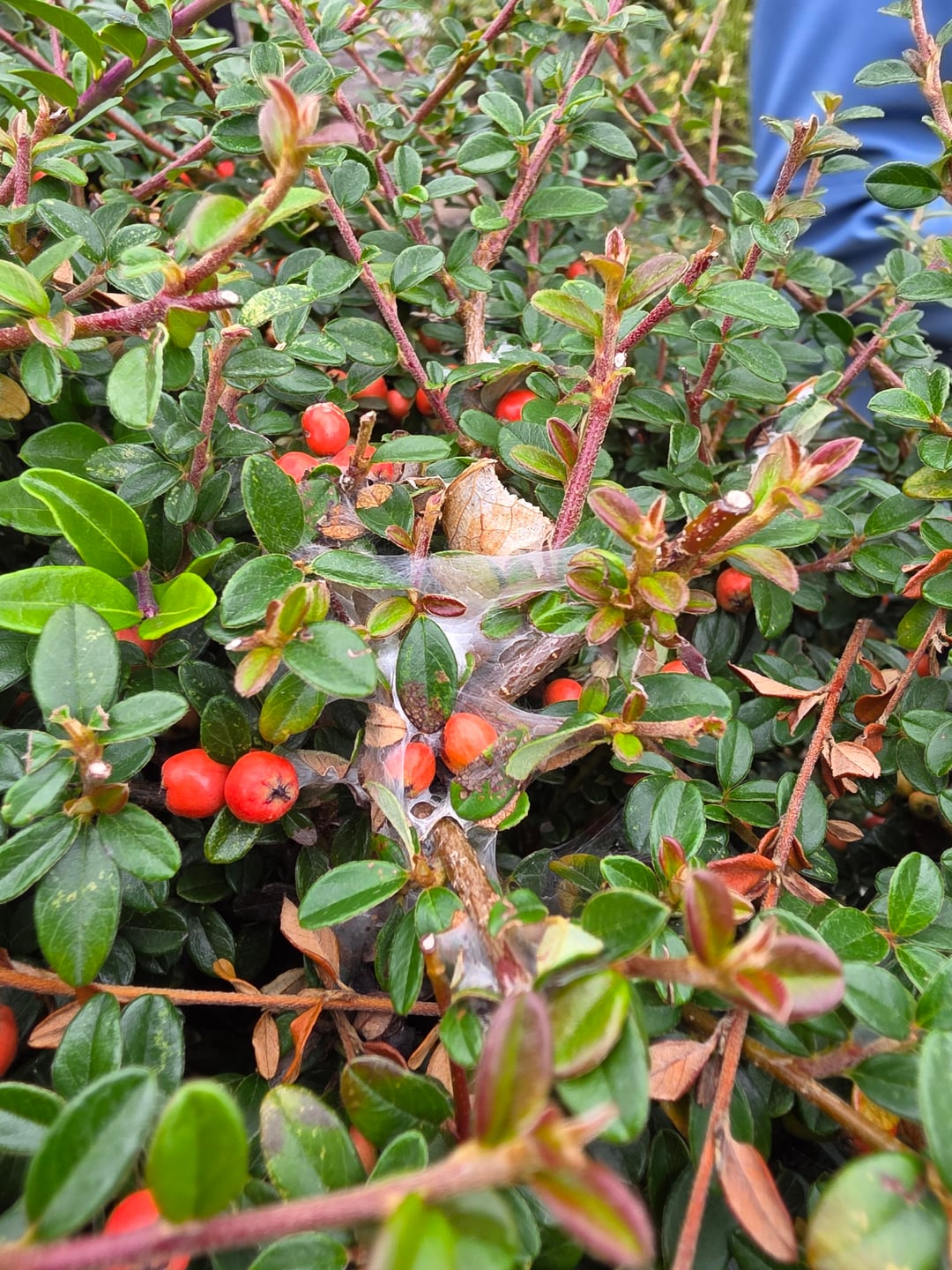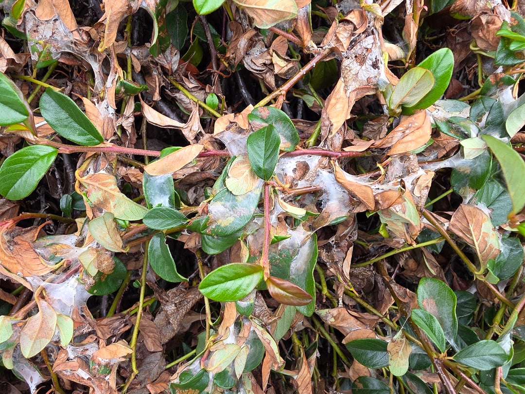 Was ist das hier? Also die kleinen weißen dinger? Sieht aus wie spinnennetz scheint es aber nicht zu sein. Beginnt erst klein und endet dann wie auf dem foto vom bodendecker, der übrigens immergün sein soll.