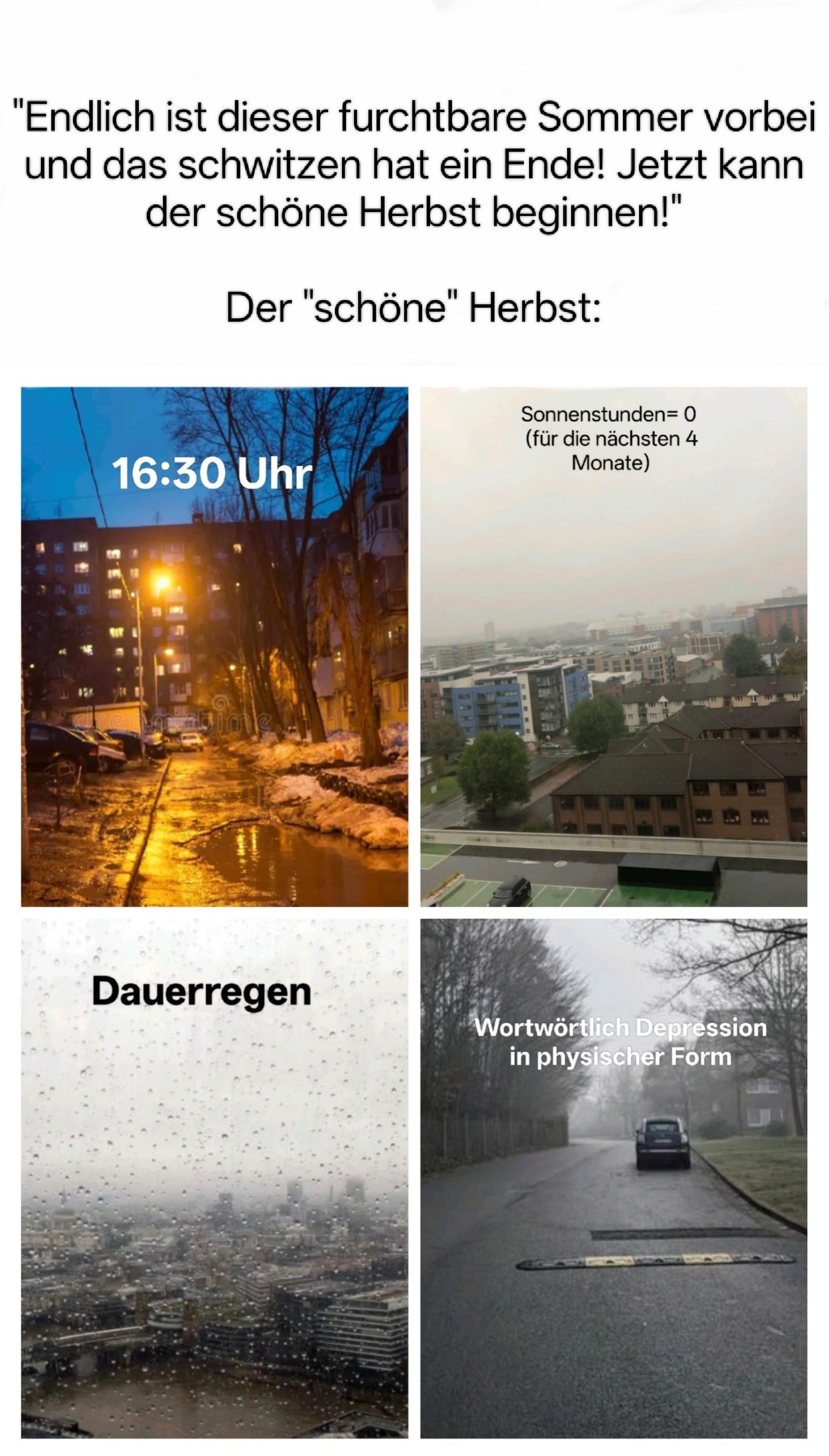 4. Für euch ist es Depression. Für mich ist das weißes Rauschen und angenehme Ruhe nach dem Trubel des Sommers.