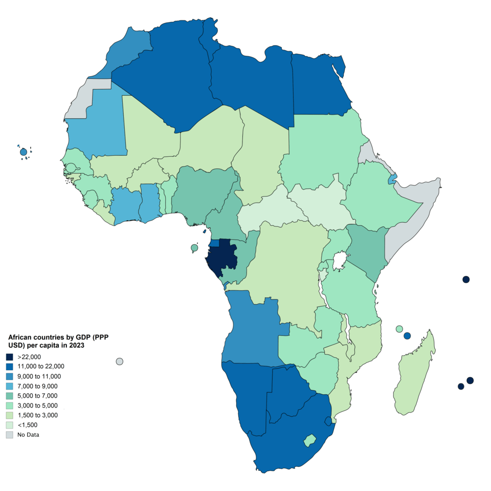 Botswana and Namibia have decently high numbers despite small populations, and that’s almost certainly because of diamonds.