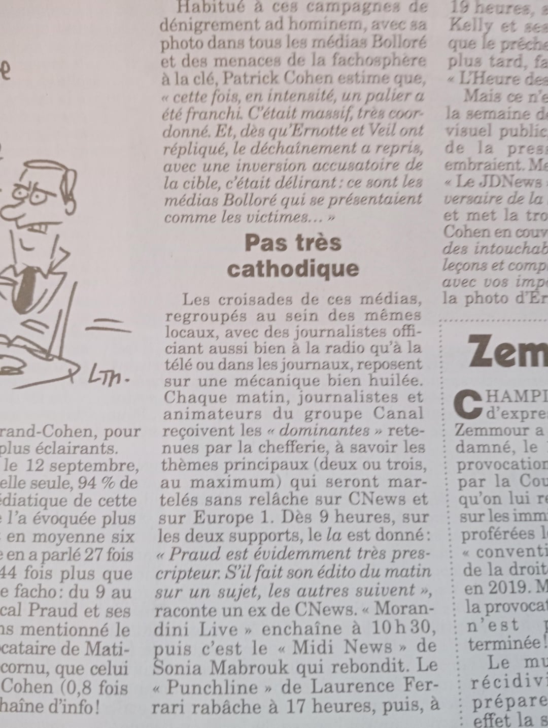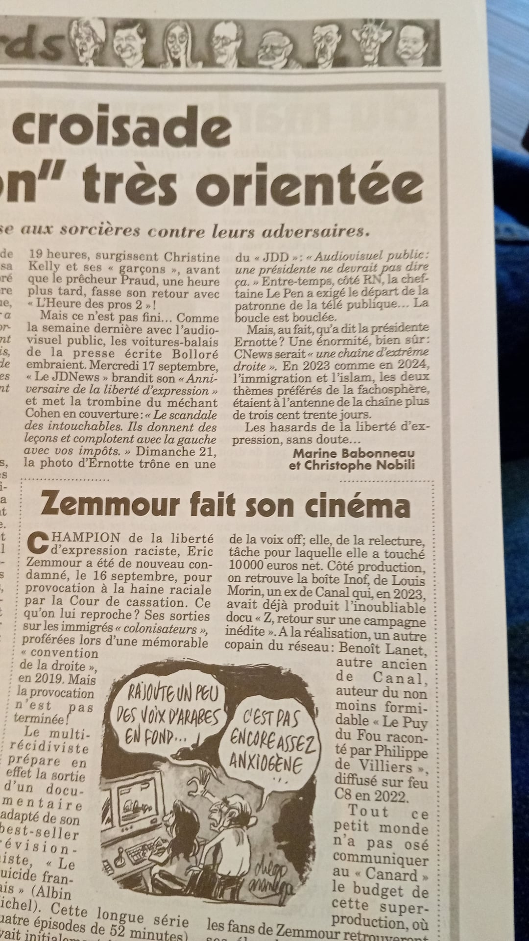 Les médias Bolloré en croisade pour une “liberté d’expression” très orientée (le canard enchaîné 24/09/25)