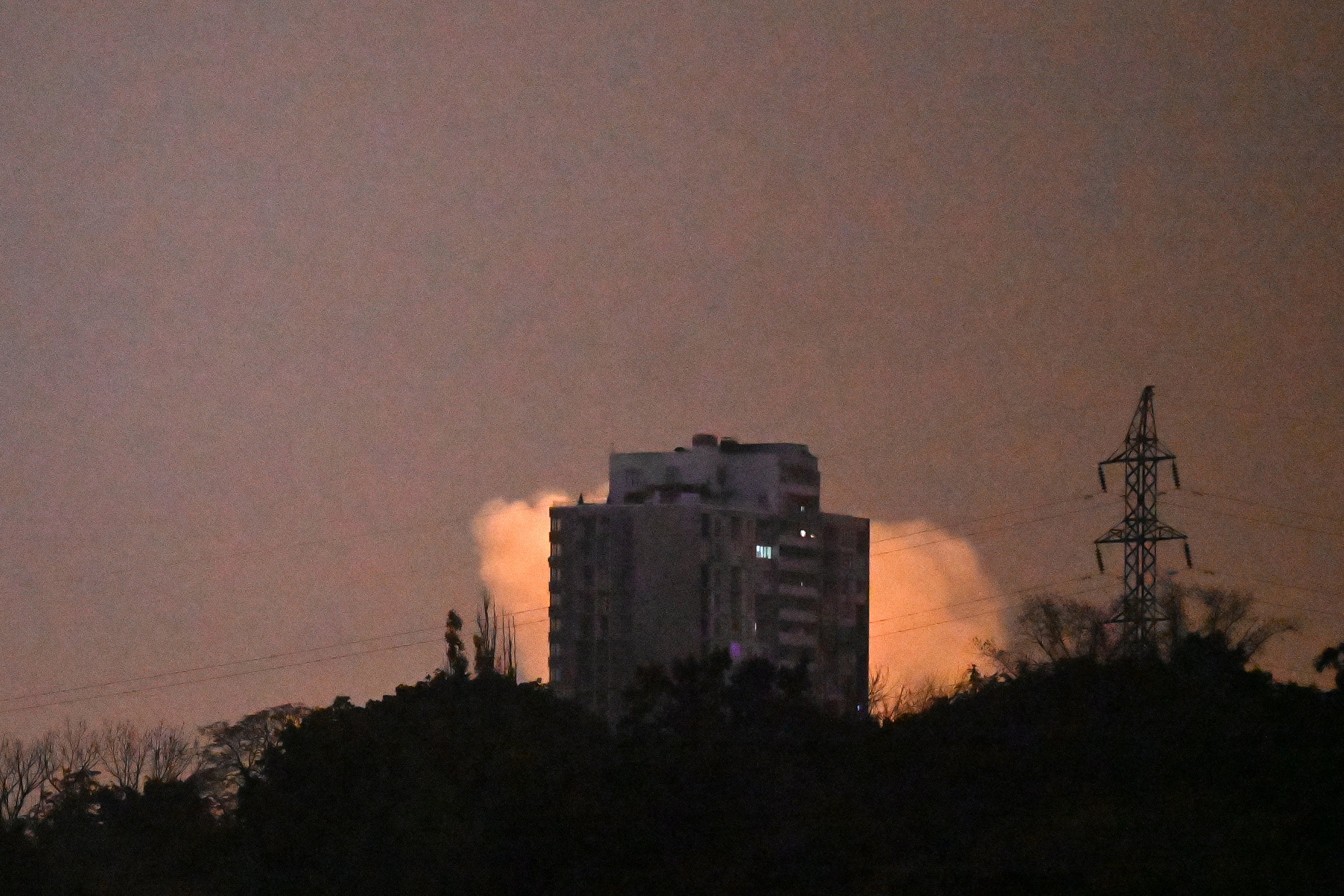 Thick black smoke could be seen rising from a blast near the city centre, as the strikes continued after dawn.