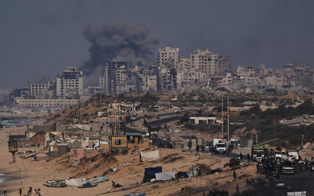 Smoke rises from Gaza City following an Israeli airstrike, September 27, 2025. (Fathi Ibrahim/Flash90)