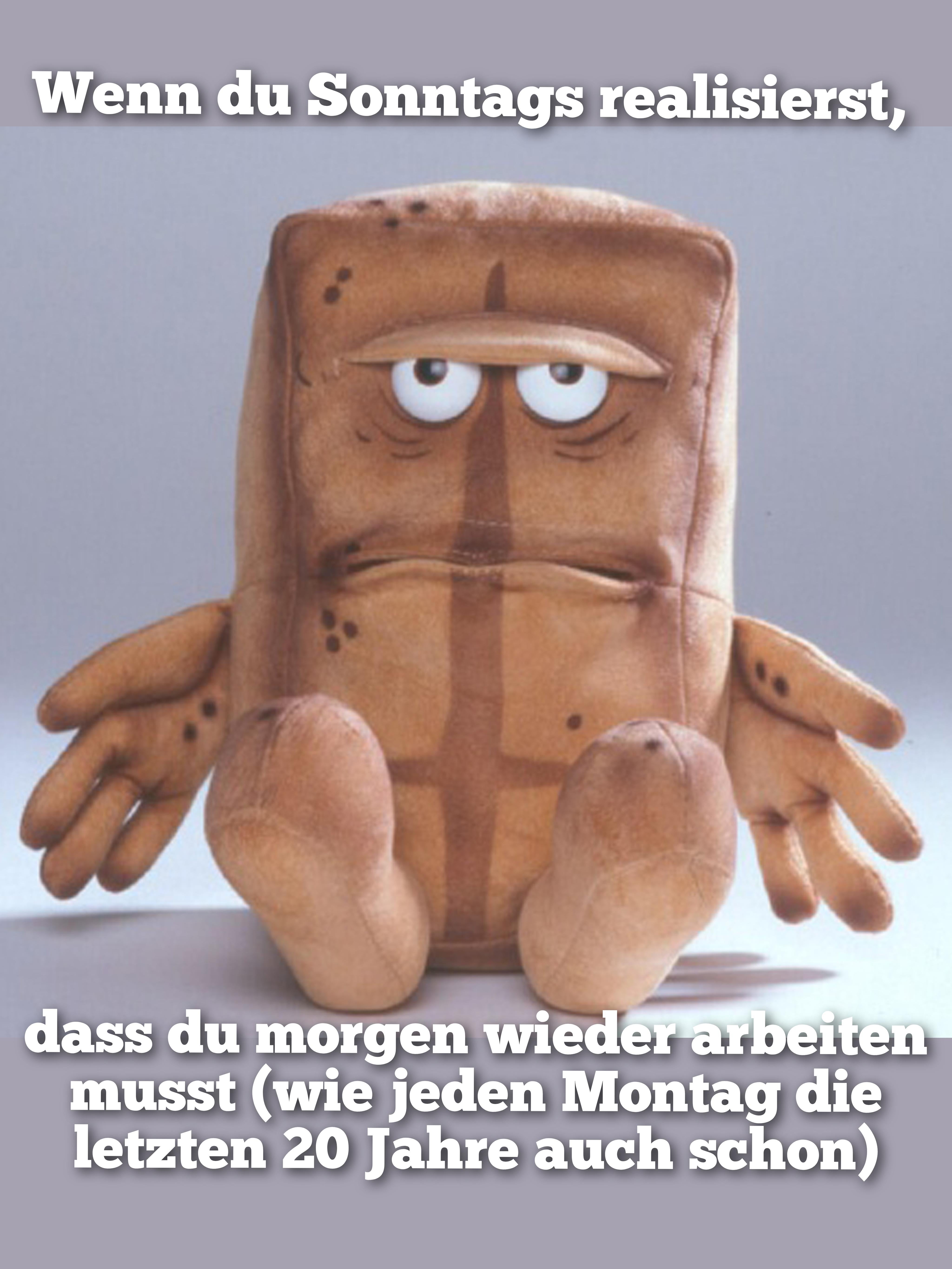 9. Im Normalfall hast du nicht mehr viel zu lachen, wenn du nicht mehr arbeiten musst, weil du dann alt bist. Freu dich auf den beschissenen Montag solange du noch ohne Prostatamedikamente pinkeln kannst.