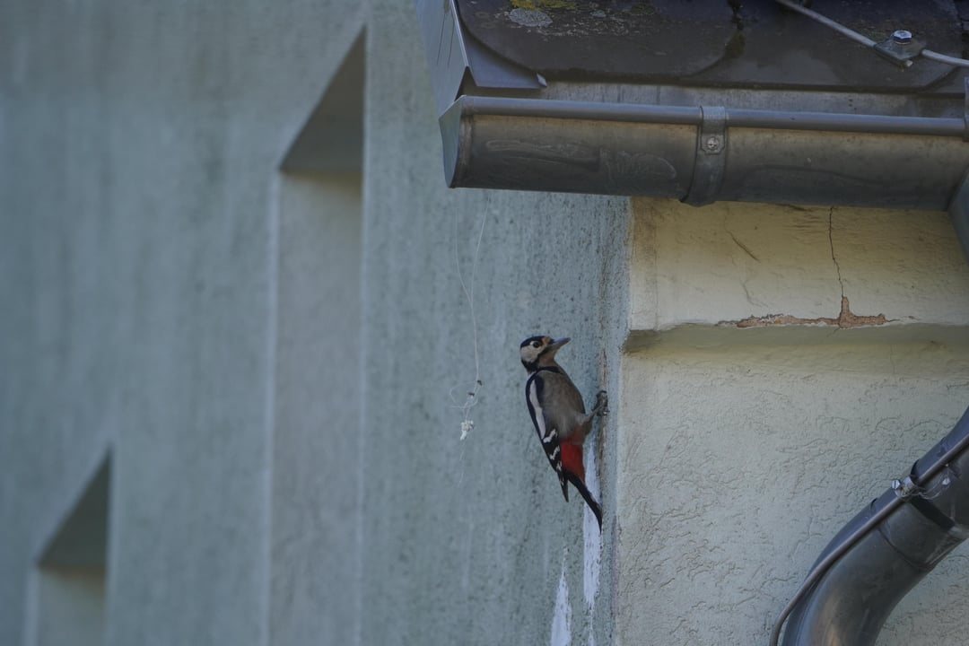 Die bauen auch gerne mal ihre Nisthöhle in eine Hausfassade. Vermutlich kein geeigneteter Baum in der Nähe.