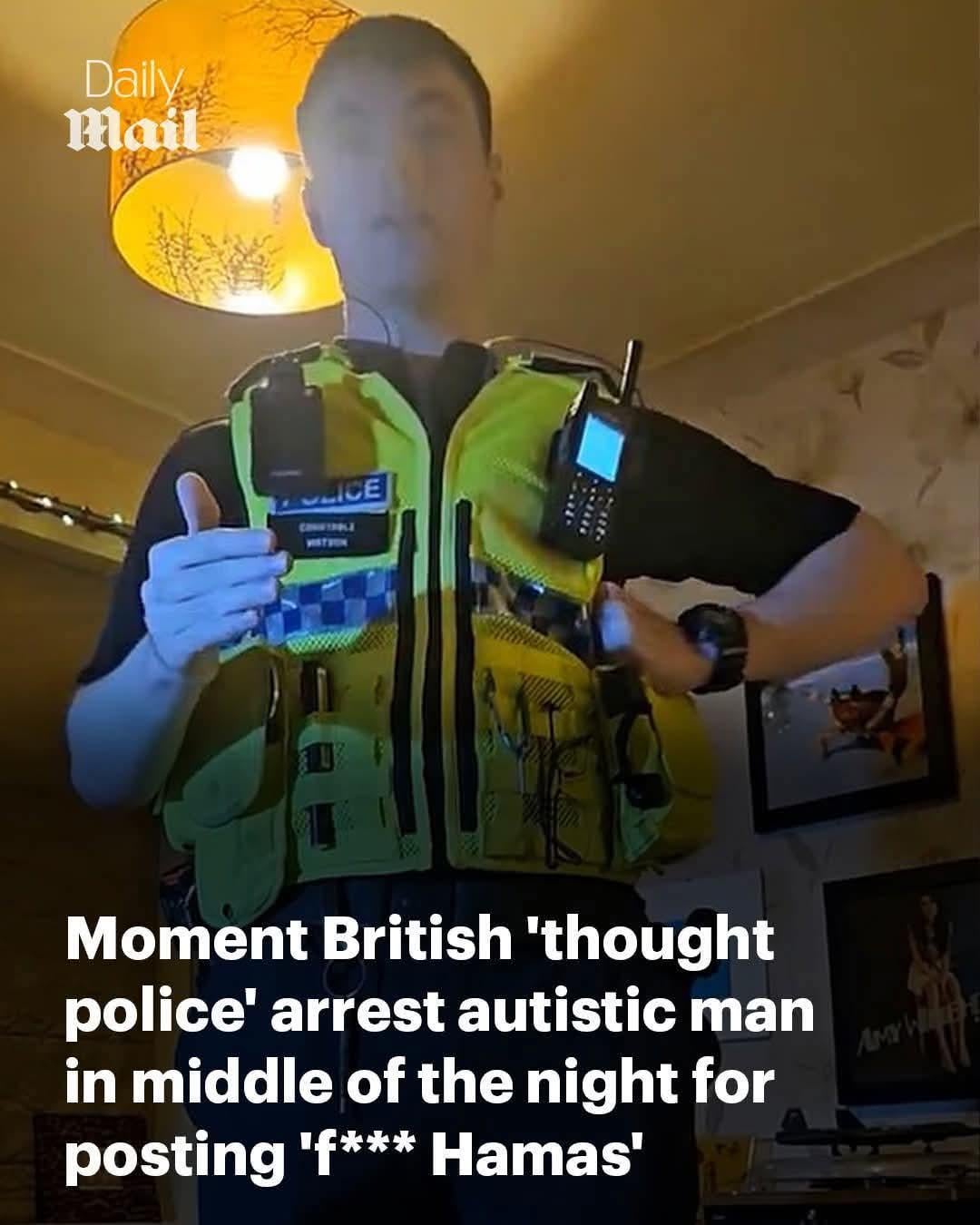Britové se s timhle úplně posrali. Nedávno si přišly dvě krávy v uniformě domů pro telefon teenagerky, protože lajkla nějakej příspěvek na fejkbůku, teď zatýkají autistu za to, že nadává na teroristickou organizaci, která zabíjí nevinný lidi.
