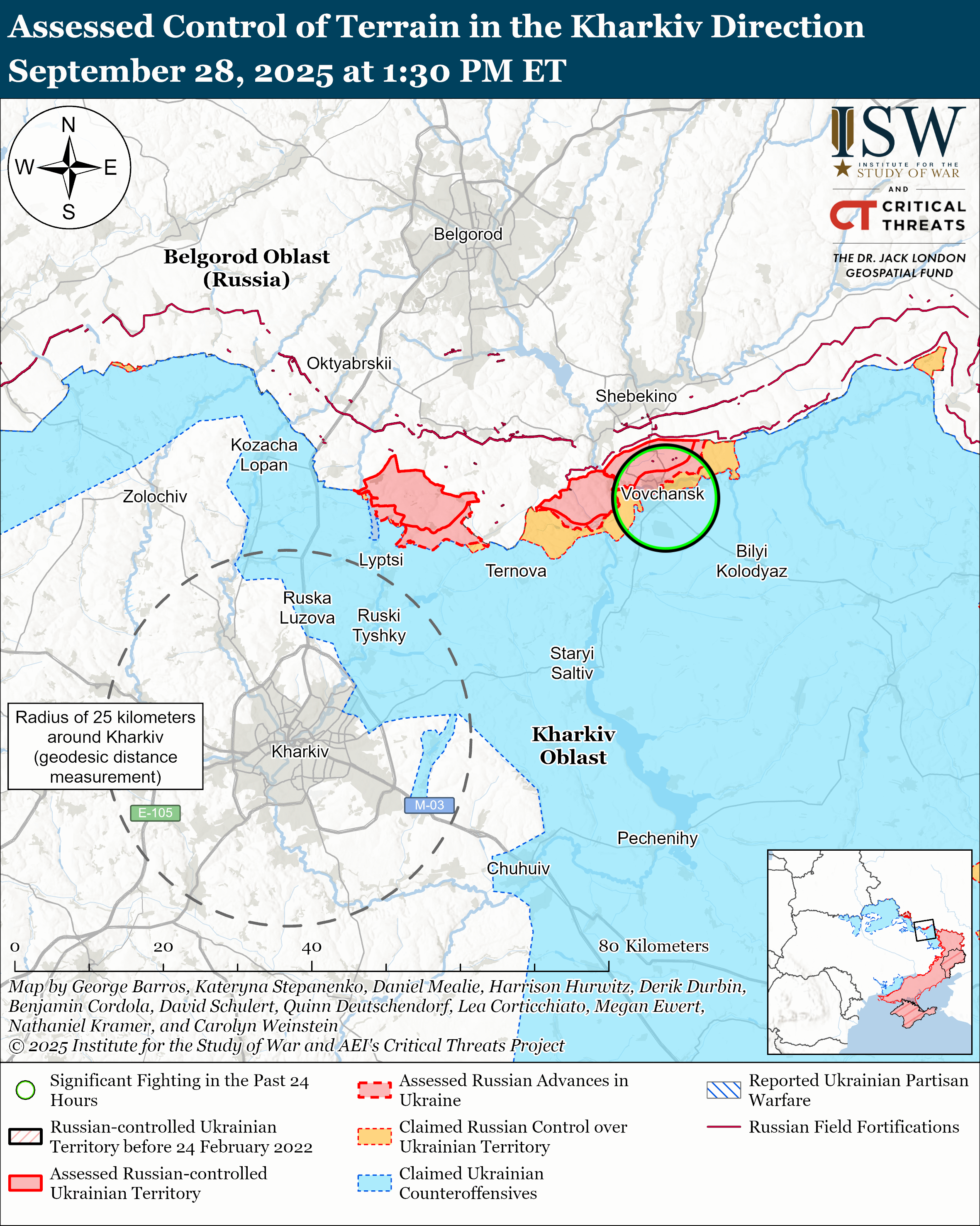 Russian forces continued offensive operations in the Velykyi Burluk direction on September 28 but did not make confirmed advances.