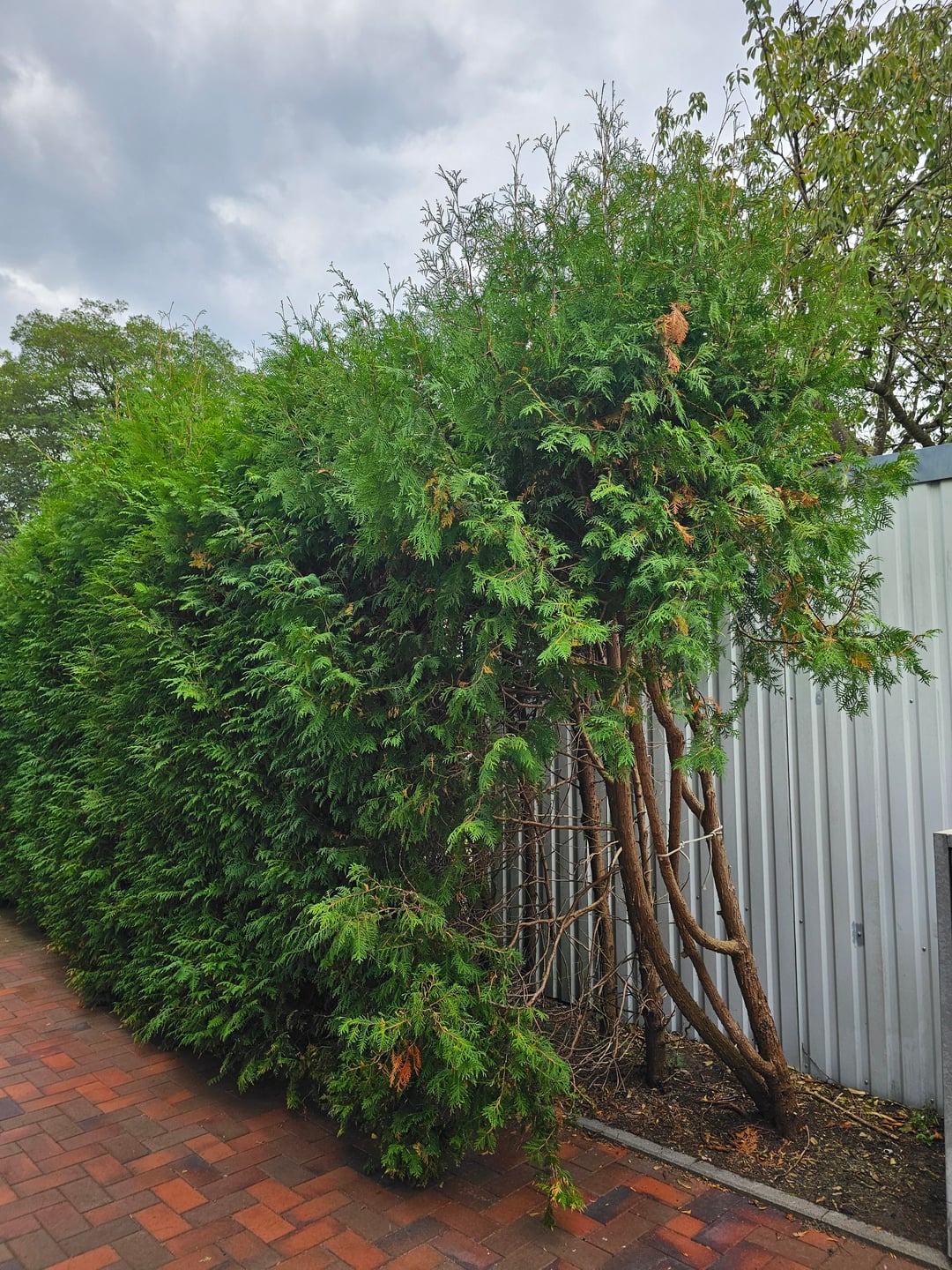 Am besten sieht dann so eine Thujahecke noch aus, wenn du alles bis zum Stamm schneidest. Andernfalls hast du da super viel Gestrüpp hängen, was wirklich keinen guten optischen Eindruck macht.