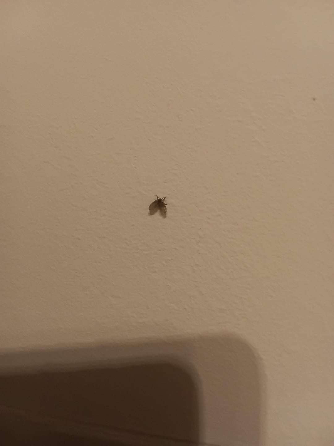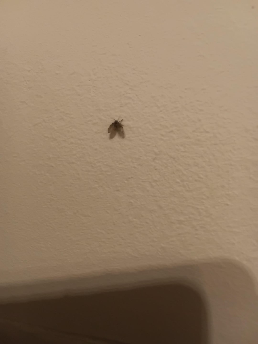 Wahrscheinlich eine Fäkalfliege. Zeit, das Bad gründlich zu putzen und die Abflüsse zu reinigen.