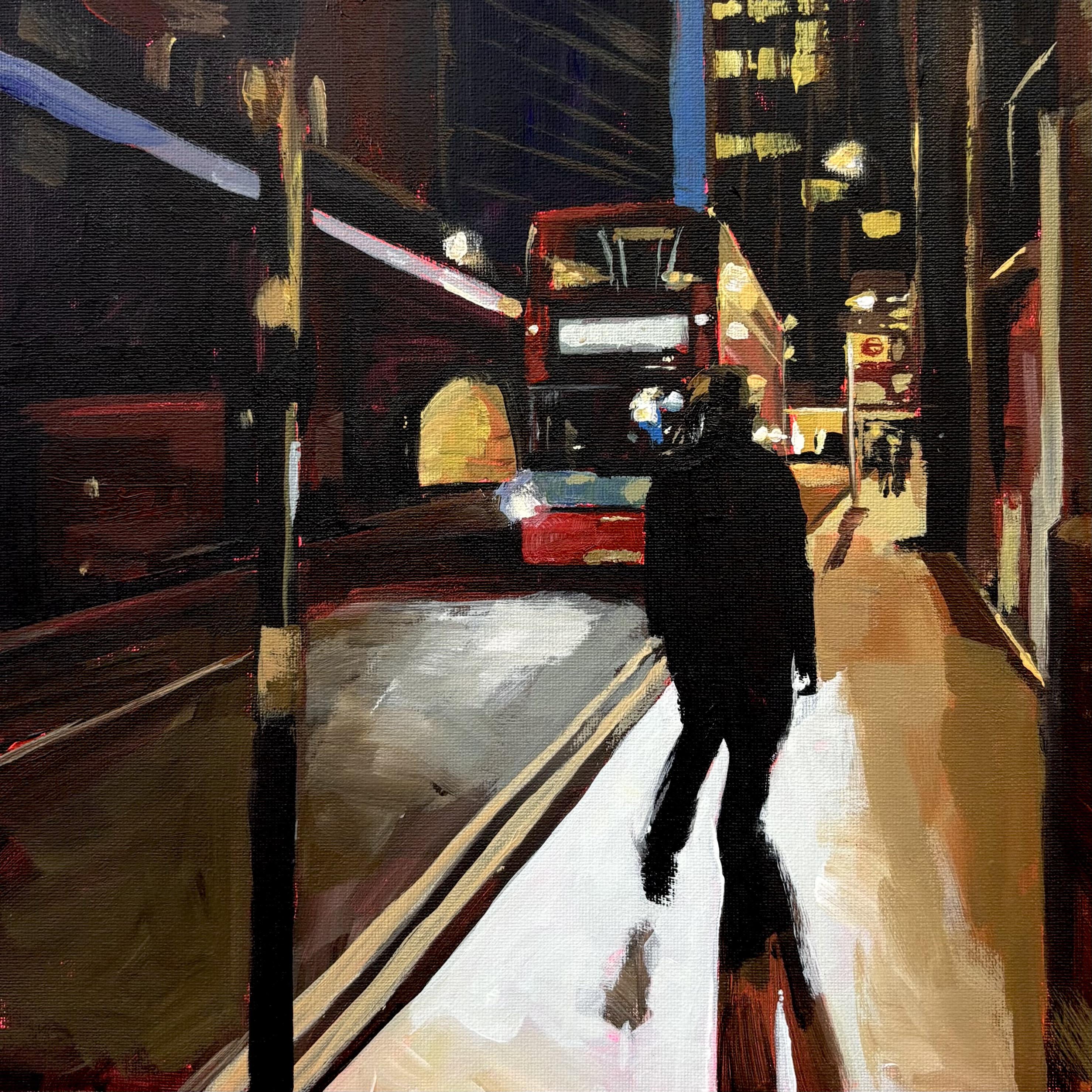This is a beautiful piece. I love how you’ve captured the street and bus lights!