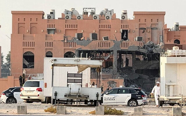 Damage is seen after an Israeli strike targeted part of a building that hosted Hamas’s leaders in Doha, Qatar, September 10, 2025. (REUTERS/ Ibraheem Abu Mustafa)
