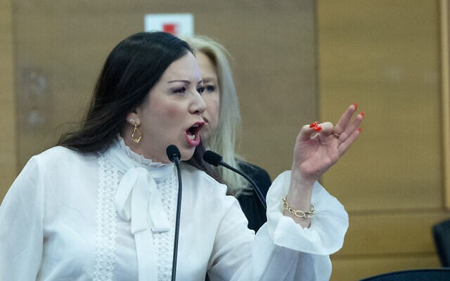 MK Tally Gotliv reacts during a Knesset conference on June 4, 2024. (Yonatan Sindel/Flash90)