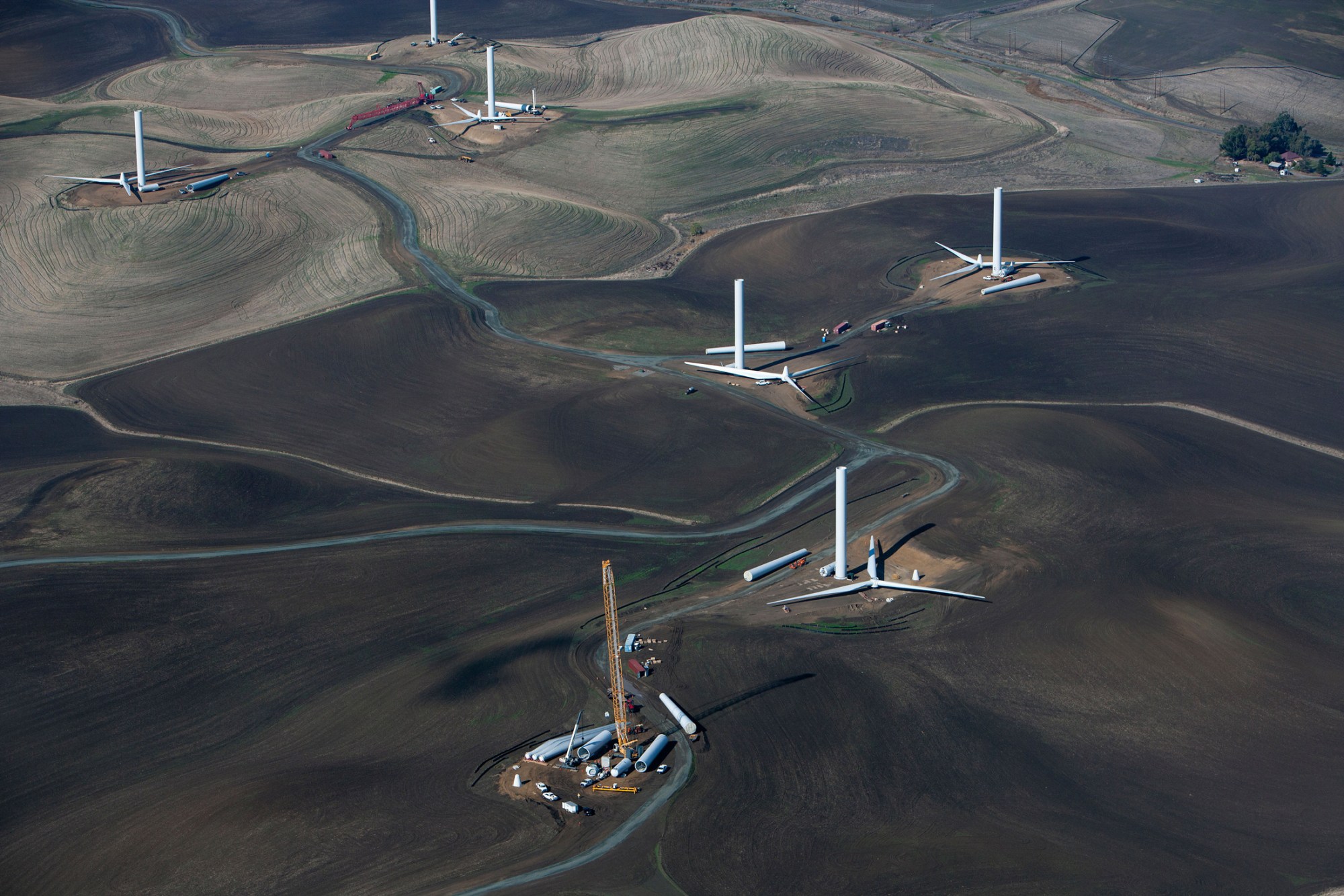 Wind turbines under construction in Solano County, California, in 2011. Credit: Aerial Archives/Alamy