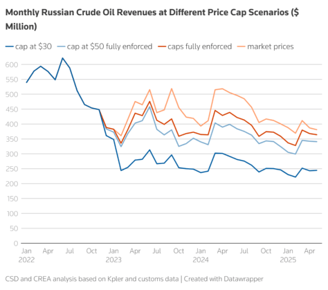 Since January 2014 alone, some $15 billion worth of fuels derived from Russian crude have reached EU markets. On top of that, Urals crude (a Russian oil export blend) has traded above the nominal ceiling of $60 a barrel for much of this year, providing Moscow with ample revenues to sustain its war economy. The EU’s 18th sanctions package, approved in July, finally closes the refining loophole and lowers the oil price cap to $47.60, but without rigorous implementation these measures risk becoming little more than symbolic gestures.