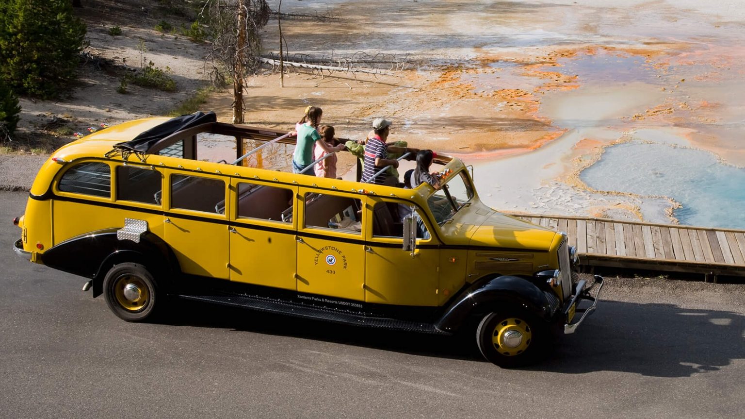 In addition to the funky door situation, the buses were built with oak wood frames to support their bodies. The parks also painted their buses their own colors, with Yellowstone going with yellow and Glacier choosing red after the mountain ash berries found in the park.