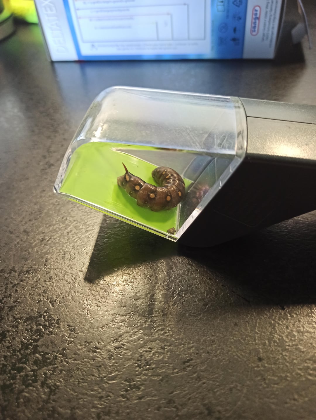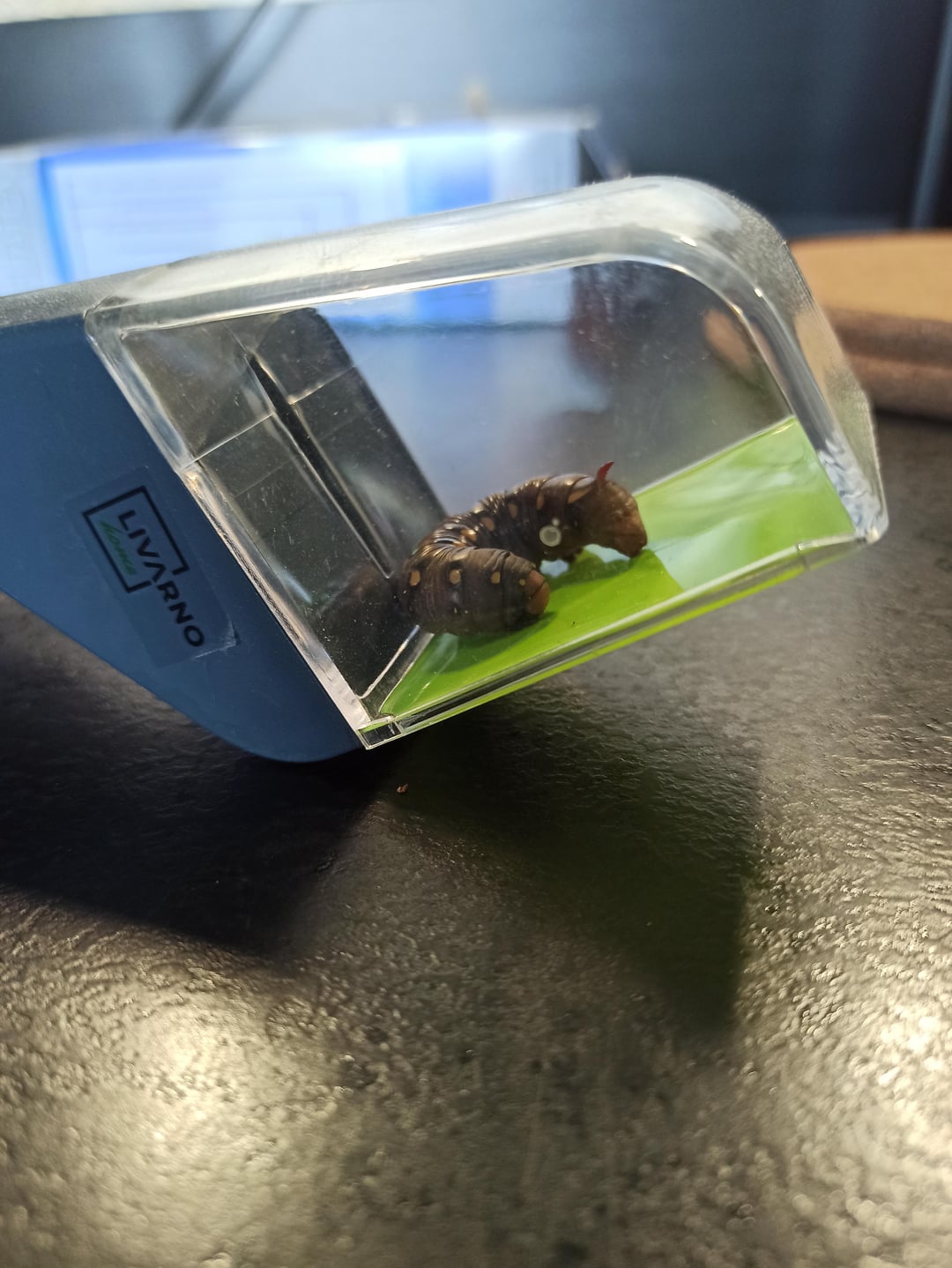 Wenn die Raupe wandert, braucht sie kein Futter mehr, aber dieser Behälter geht gar nicht. Sie braucht leichte Erde (Blumenerde geht voll ok), viele trockene Ästchen, Blätter um sich zu verstecken, wie ein Gestrüppboden, und vor allem Ruhe. Die darf auch nicht im Haus bleiben, die muss im Freien stehen, die Temperatur ist wichtig für die Überwinterung. Dann hast du die Chance, dass sie sich verpuppt. Ohne die Möglichkeit sich zu verstecken/vergraben ist die Raupe sehr gestresst. Wenn du sie im Haus behältst, schlüpft der Falter zu früh und kann nicht frei gelassen werden, er würde in der Kälte sterben. Ich finde es im Grunde unproblematisch, die Raupen zu fangen und sie geschützt vor Schlupfwespen und anderen Parasiten / Fressfeinden zur Verpuppung zu bringen. Man muss es aber richtig machen, sonst geht die Tierliebe nach hinten los.
