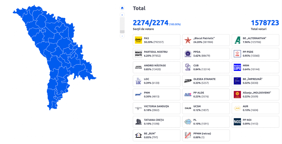 On September 23, Russian foreign intelligence stated that the European Union allegedly intends to “…keep Moldova in line with its Russophobic policy. This is to be done at any cost, up to and including the introduction of troops and the actual occupation of the country.” The Russian Foreign Intelligence Service also reported that NATO forces were allegedly preparing a “landing” in Odessa to intimidate pro-Russian residents of Transnistria and destabilize Moldova. Despite the disinformation, Moldovan voters appeared unswayed. Out of 1,608,518 ballots cast (52.21% turnout), the pro-European party secured 55 mandates, supported strongly by the diaspora — a consistently a pro-European constituency — that cast over 281,000 votes.