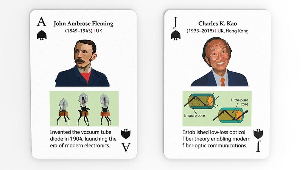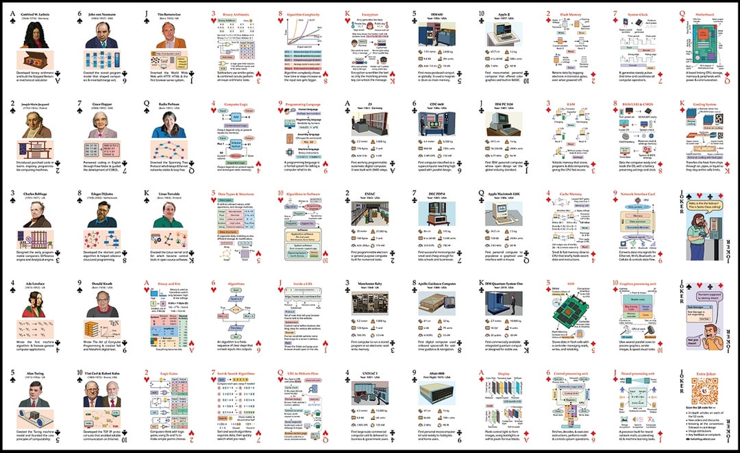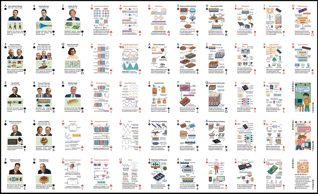 6 legends from here, who made our “tech” world possible. They feature in educational deck of playing cards that covers fundamentals of two big subjects, computers and electronics in two decks of playing cards. Check the last two images too [OC]