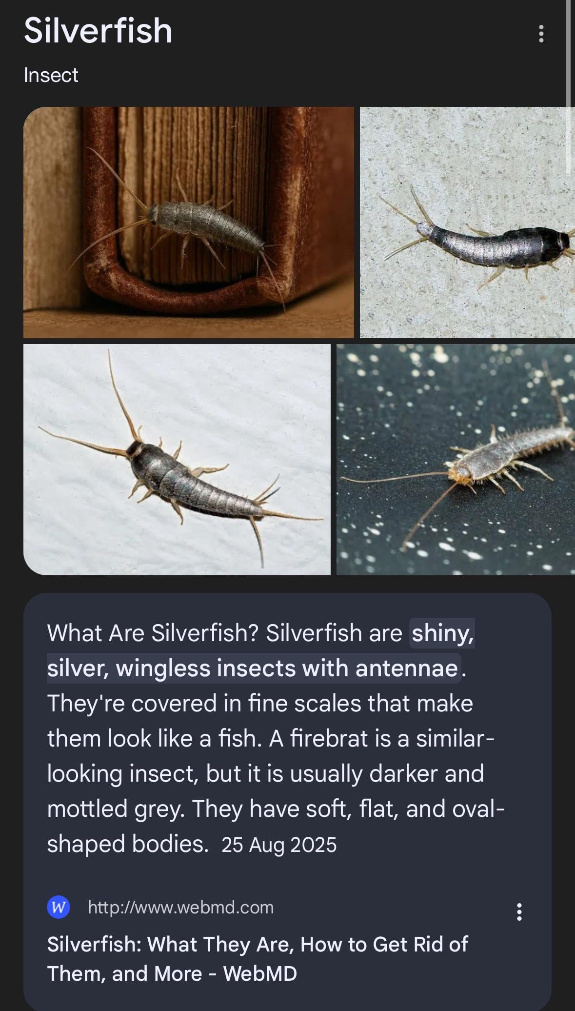 28. If a house touches the ground in any place in the northern hemisphere, it’s got silverfish in it. They may guve you the ick, but they’re harmless, ckean your house and have a massive plus you’re not considering: they aren’t cockroaches.