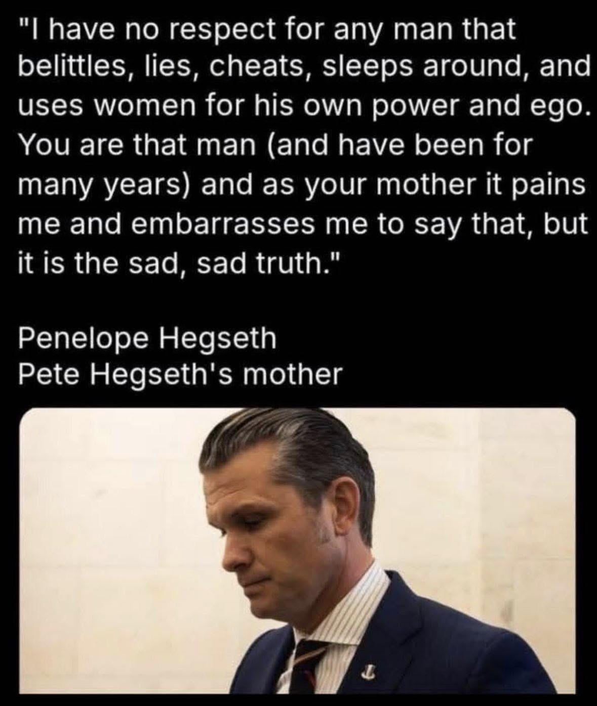 1. I recall TFG’s mom was also embarrassed of him. RFK family disowns him. Seems to be a thing.