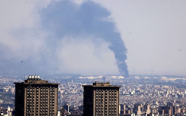 Smoke billows in the distance from an oil refinery following an Israeli strike on the Iranian capital Tehran, on June 17, 2025. (ATTA KENARE / AFP)