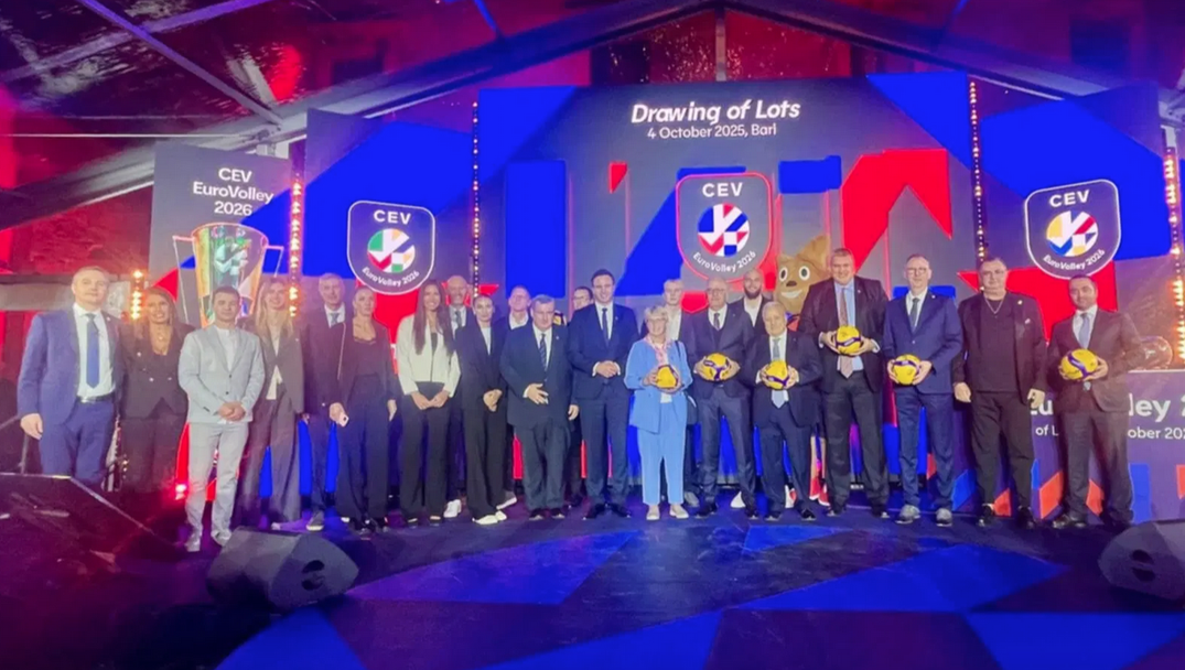 Хулио Веласко и Фердинандо Де Джорджи, които изведоха Италия до световните титли за жени и мъже през 2025 година, присъстваха на жребия в Бари.