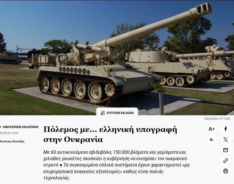 Greece plans to transfer 60 M110A2 203mm howitzers, 150,000 shells, and thousands of 70mm and 127mm rockets to Ukraine via a Czech-led defense agreement, according to Ef.Syn. These systems, deemed obsolete by Greece, will be delivered “as is” from military stockpiles.