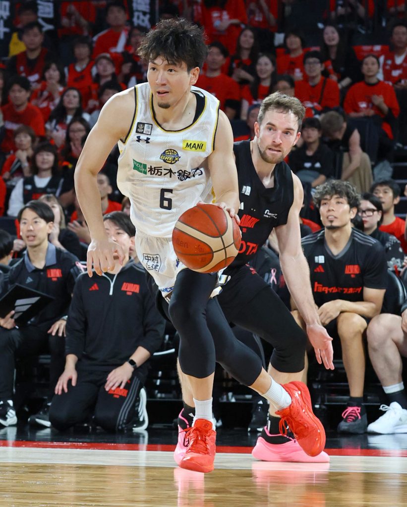 Utsunomiya Brex guard Makoto Hiejima runs the offense in the third quarter against the Alvark Tokyo on October 3 at Toyota Arena Tokyo. (©SANKEI)