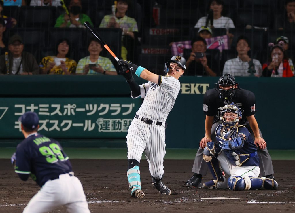 Hanshin Tigers third baseman Teruaki Sato smacked a two-run home run off Tokyo Yakult Swallows starter Koyo Aoyagi in the fifth inning on Thursday, October 1.