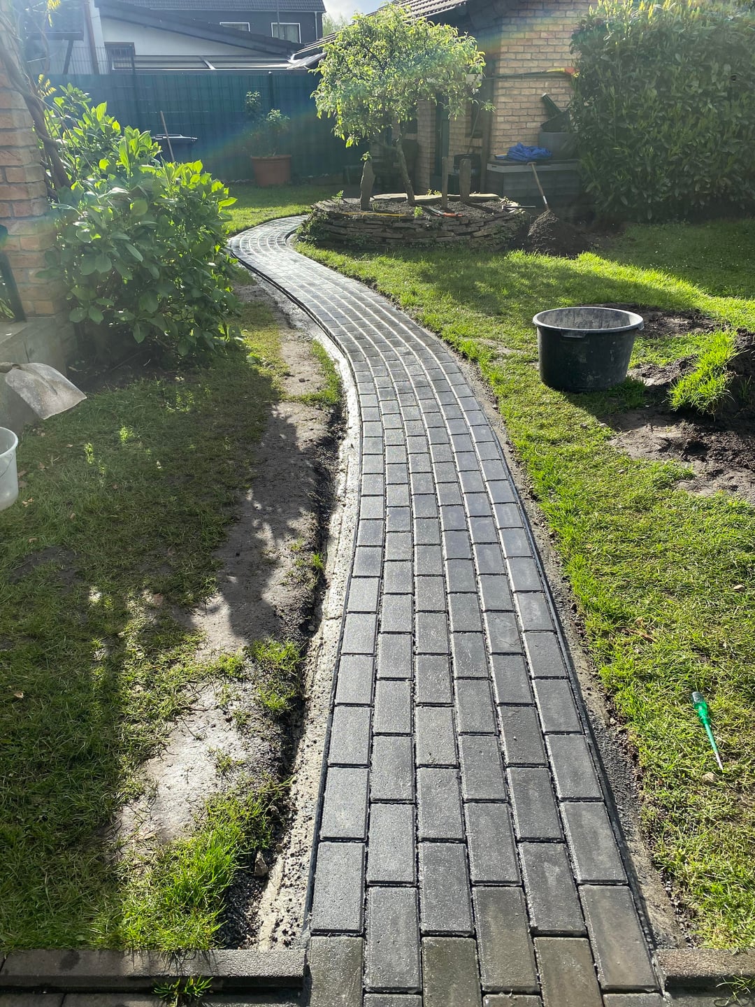 Oh genau das habe ich auch vor ohne licht. Fragen: Wie tief ausgeschachtet ? Nur Feinsplitt? Wie hoch den Feinsplitt ? Vielen Dank !!