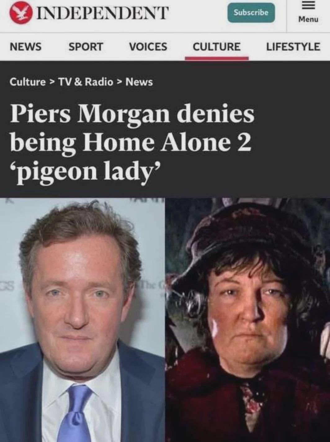 Im reluctant to say this, but I believe him … because there’s no pigeon anywhere that would go near Piers Morgan, except to shit on him from a great height. Even pigeons have got standards.
