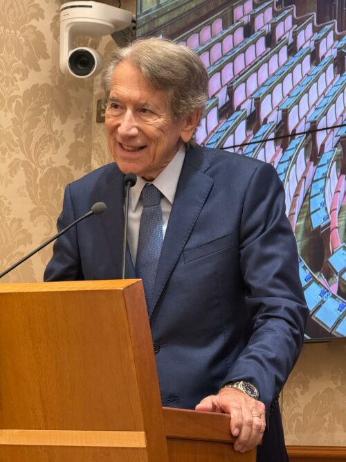e al Senatore Giulio Terzi di Sant’Agata, già Ministro degli Esteri e Ambasciatore in sedi chiave come Tel Aviv, New York e Washington. Nella prestigiosa cornice della Sala Caduti di Nassirya, all’interno di Palazzo Madama, si è tenuta una cerimonia di alto profilo culturale promossa dal Centro Studi Federico II, in occasione della V edizione del Premio Internazionale organizzato dall’Istituto con sede a Palermo, Roma, New York e Bordeaux; il Presidente del Centro Studi Giuseppe Di Franco, ha aperto l’evento con un sentito saluto rivolto alle autorità, ai diplomatici, ai giornalisti e ai relatori presenti, sottolineando l’importanza del dialogo interculturale come fondamento del multilateralismo. “La cultura è un ponte ideale tra i popoli”, ha dichiarato, ribadendo la missione dell’istituzione: promuovere tolleranza, apertura e cooperazione globale. Durante la cerimonia, il Centro Studi ha conferito il Premio Internazionale Federico II, una statuetta in bronzo raffigurante l’imperatore al Senatore Giulio Terzi di Sant’Agata, già Ministro degli Esteri e Ambasciatore in sedi chiave come Tel Aviv, New York e Washington, che ha lodato le iniziative del Centro come “prezioso contributo al panorama culturale e diplomatico italiano”. L’onorificenza Augustale è stata invece assegnata al Dott. Stefano Polli, Vice Direttore Generale dell’ANSA, per il suo contributo al giornalismo italiano nel mondo, e all’Ambasciatrice di Romania in Italia, Gabriela Dancau, per il suo impegno nella promozione del soft power romeno e italiano.