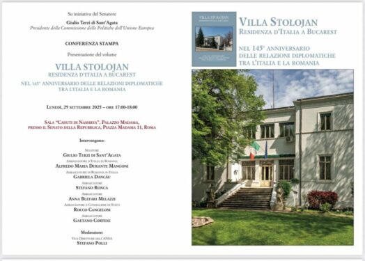 A moderare l’incontro è stato Stefano Polli, Vice Direttore dell’ANSA, mentre tra i relatori si sono alternati figure di spicco del mondo politico e diplomatico: Senatore Giulio Terzi di Sant’Agata, Senatore e Presidente della Commissione Politiche dell’Unione Europea; Alfredo Maria Durante Mangoni, Ambasciatore d’Italia in Romania (in collegamento video); Gabriela Dancau, Ambasciatrice di Romania in Italia; e gli Ambasciatori Stefano Ronca, Anna Blefari Melazzi e Rocco Cangelosi. “L’iniziativa dell’Ambasciatore Cortese è meravigliosa – ha dichiarato Gabriela Dancau – questo libro non è solo un documento storico, ma un ponte che unisce Romania e Italia, due Paesi con radici comuni e un futuro condiviso nell’Unione Europea, nella NATO e nello spazio Schengen”. Con oltre vent’anni di attività editoriale, l’Ambasciatore Gaetano Cortese ha scritto numerosi volumi dedicati alle residenze italiane nel mondo, contribuendo a far conoscere il valore storico, artistico e culturale di questi luoghi. La sua ultima opera su “Villa Stolojan” si distingue per la ricchezza iconografica, il mirato racconto storico e la sorvegliata capacità di intrecciare