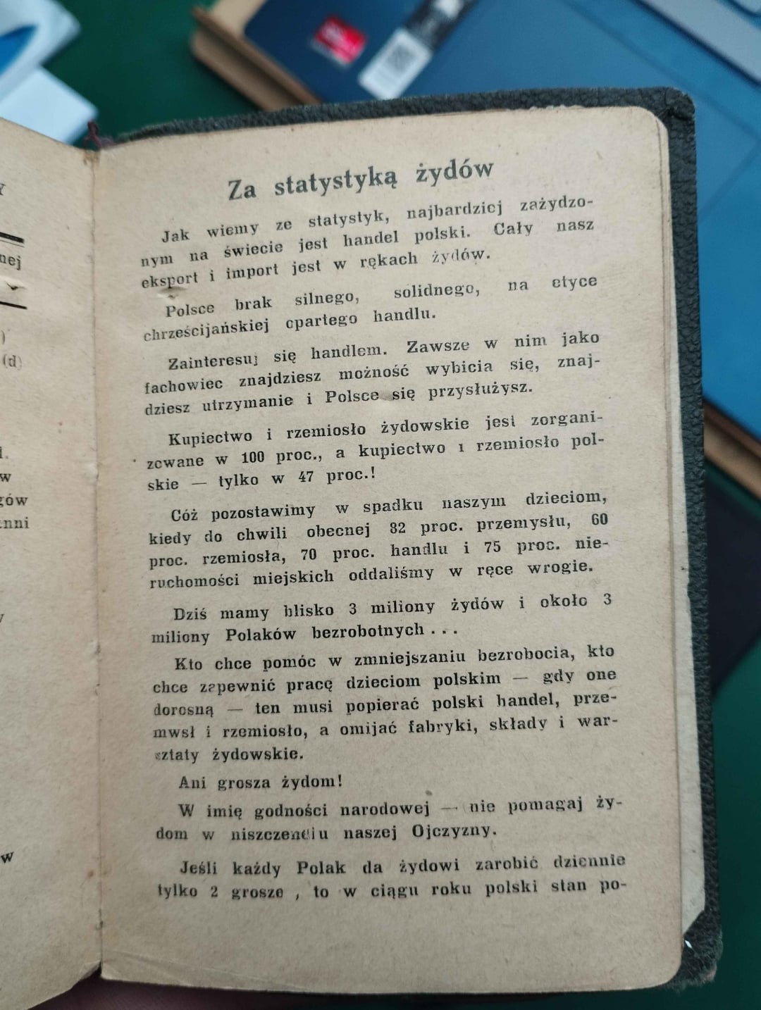 If every Pole lets a Jew earn just 2 groszy a day, then in the course of a year the Polish national wealth will decrease by 180 million złotys, which become a tool of struggle against today’s and tomorrow’s generation.