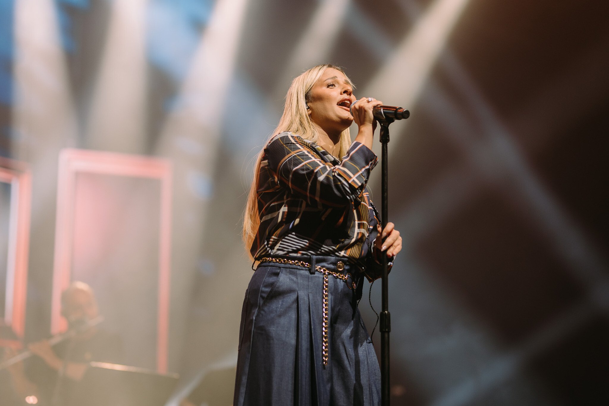 Israeli pop star Eden Ben Zaken performs at an event commemorating two years since Hamas’s October 7, 2023, massacre at the Nova music festival, October 5, 2025. (Eclipse Media)