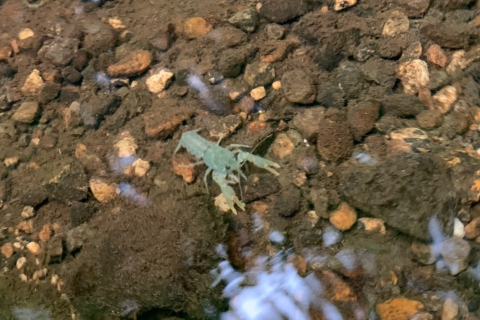 The image shows one of the baby crayfish in the river.