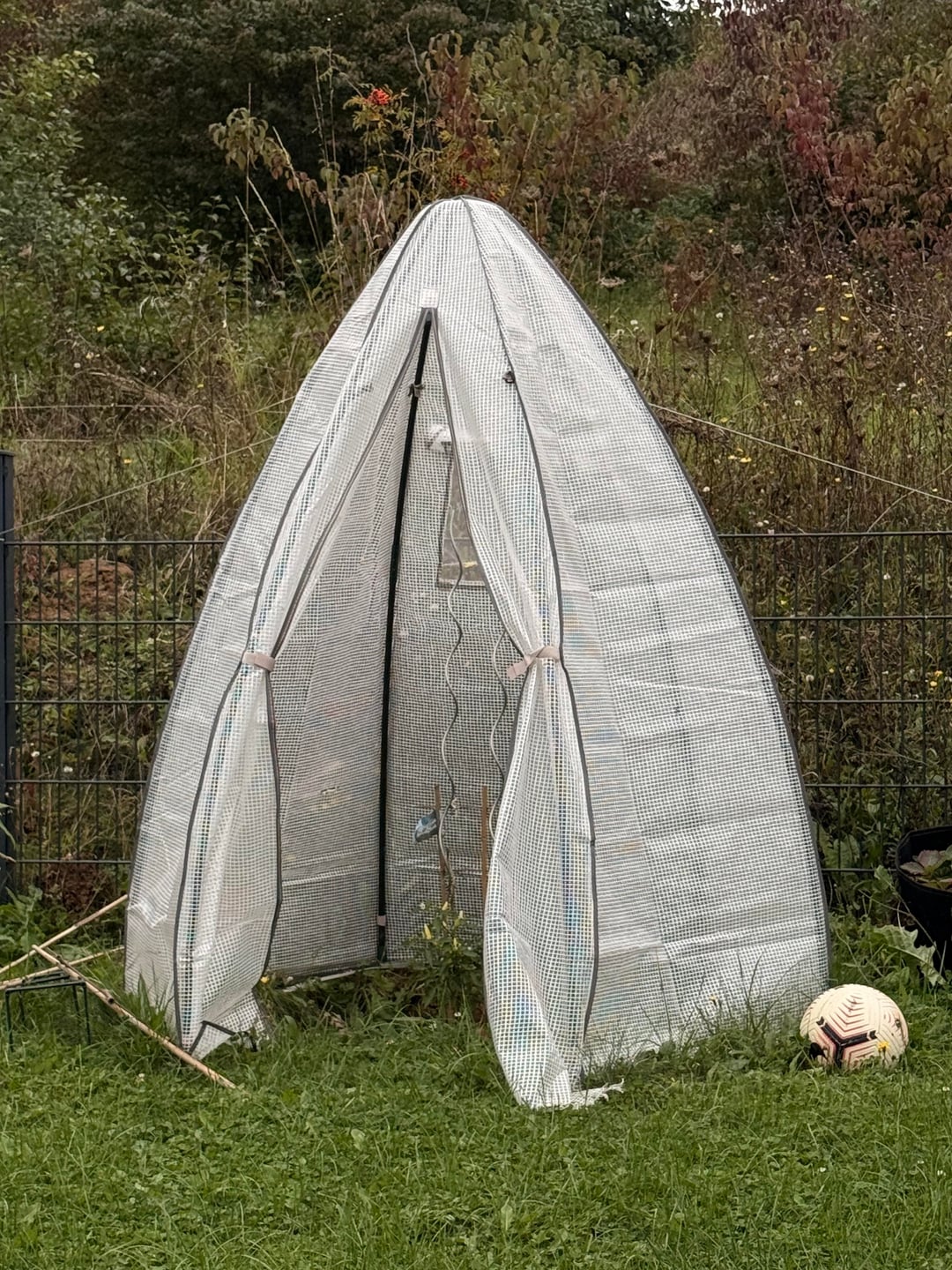 Ich habe diverse Frostschutzhauben zur Verfügung, sowie zwei Foliengewächshäuser.