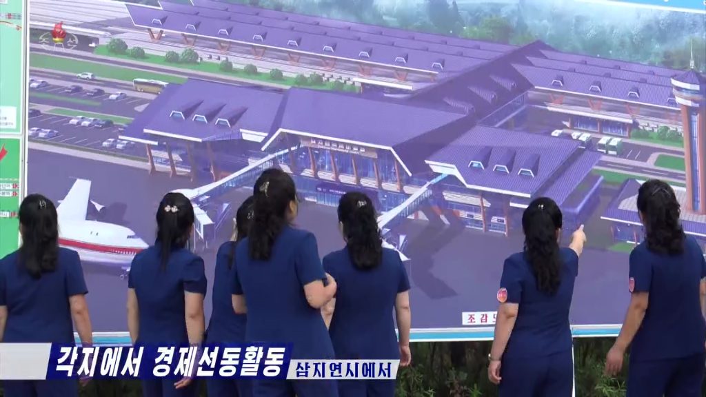 The new project will significantly upgrade the airport, according to images of the proposed construction broadcast by Korean Central Television on July 18. The images showed a new terminal building, carrying the name “Samjiyon International Airport” connected to a railway station and an expanded apron on the airfield.