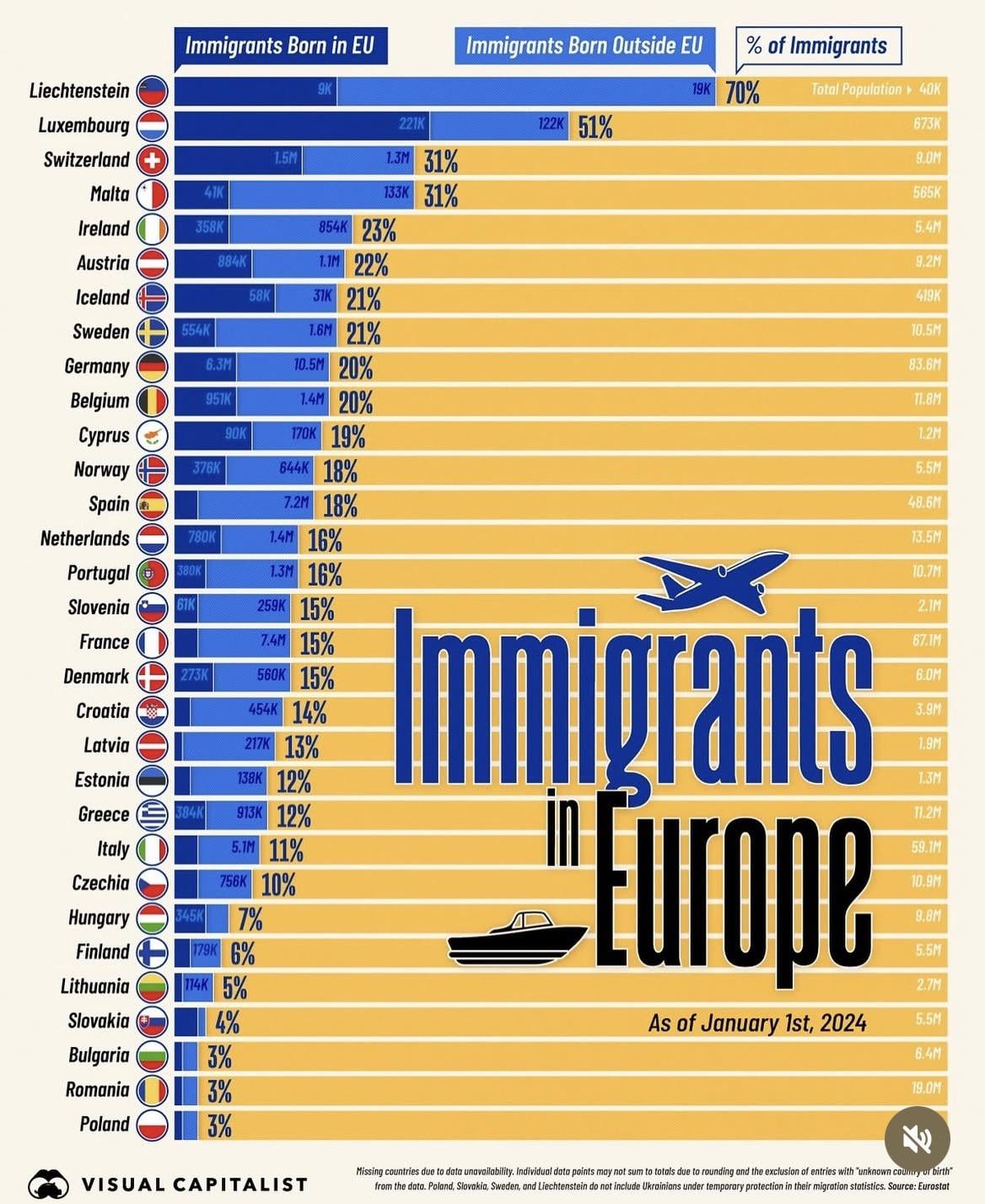 For anyone wondering, immigrants born outside of the EU also includes people from other European countries ( which are not members of the EU yet).