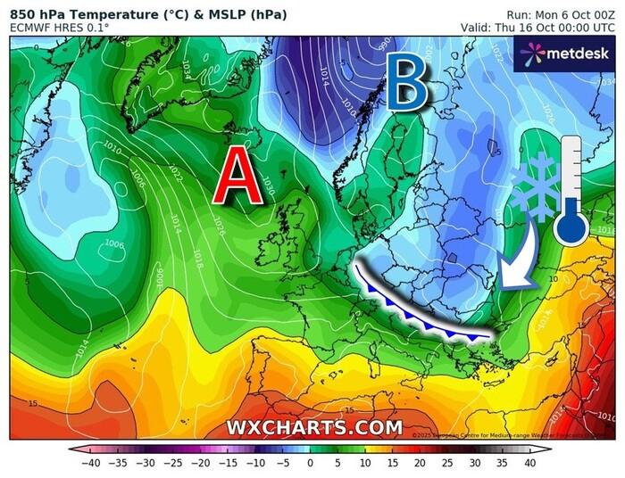 La causa di questa possibile, ennesima, svolta atmosferica va ricercata nei grandi movimenti a scala emisferica. Proprio verso la metà del mese di Ottobre l’alta pressione delle Azzorre migrerà verso latitudini polari, arrivando fin sull’Islanda. Questo movimento metterà in moto correnti d’aria molto fredde che direttamente dall’Artico scivoleranno verso Sud, attraversando dapprima l’Europa orientale, per poi puntare dritte verso l’Italia. In gergo meteorologico questi movimenti a scala emisferica vengono definiti “scambi meridiani”: l’aria fredda scende verso le medie latitudini dal Nord Europa/Atlantico, raffreddandole, mentre l’aria calda subtropicale africana sale verso il continente.