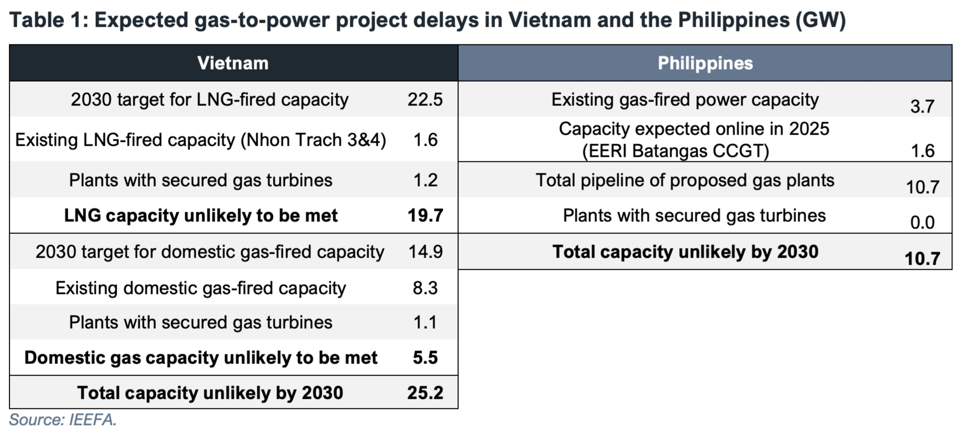 Ongoing shortages are frequently discussed in a Western context, with little coverage of the implications for emerging Asian economies. However, for the 35.9 gigawatts (GW) of gas projects still in early development stages in Vietnam and the Philippines (Table 1), turbine backlogs will likely increase project costs, and add to an already lengthy list of regulatory, legal, and financial challenges facing gas-to-power project developers. The Institute for Energy Economics and Financial Analysis (IEEFA) expects that no new liquefied natural gas (LNG) fired power plants will come online in the Philippines this decade. While two projects in Vietnam have likely secured turbines, they still lack key contracts necessary for financial close.
