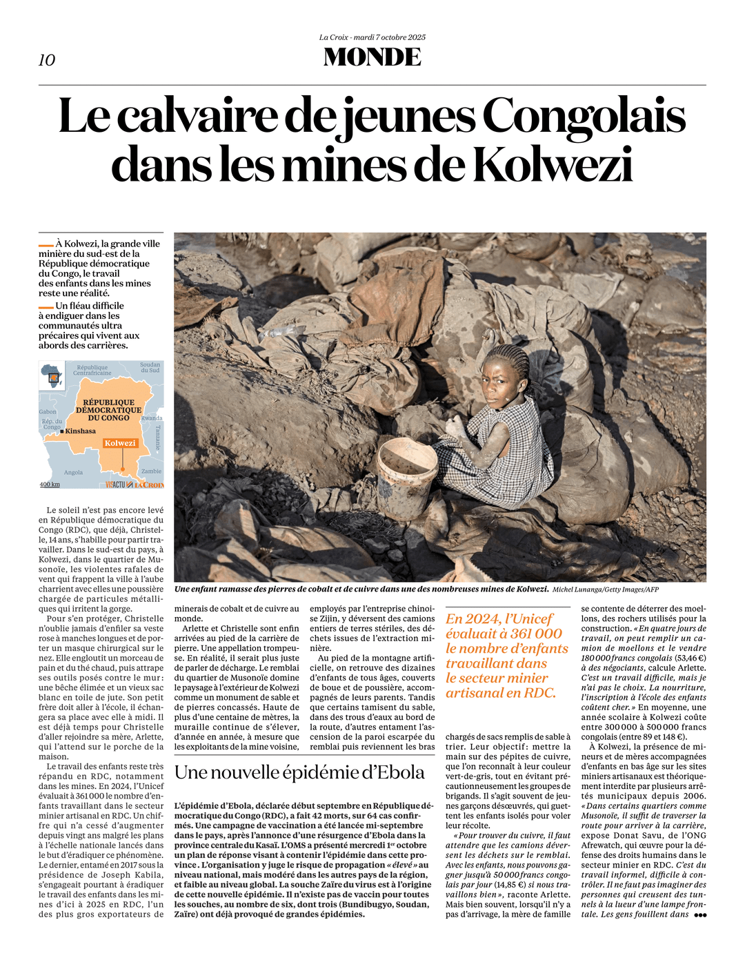 Le calvaire de jeunes Congolais dans les mines de Kolwezi – La Croix (07/10) by Upstairs_Profile_355 Tags:ActualitésfranceL actualité au quotidienL'actualité au quotidien