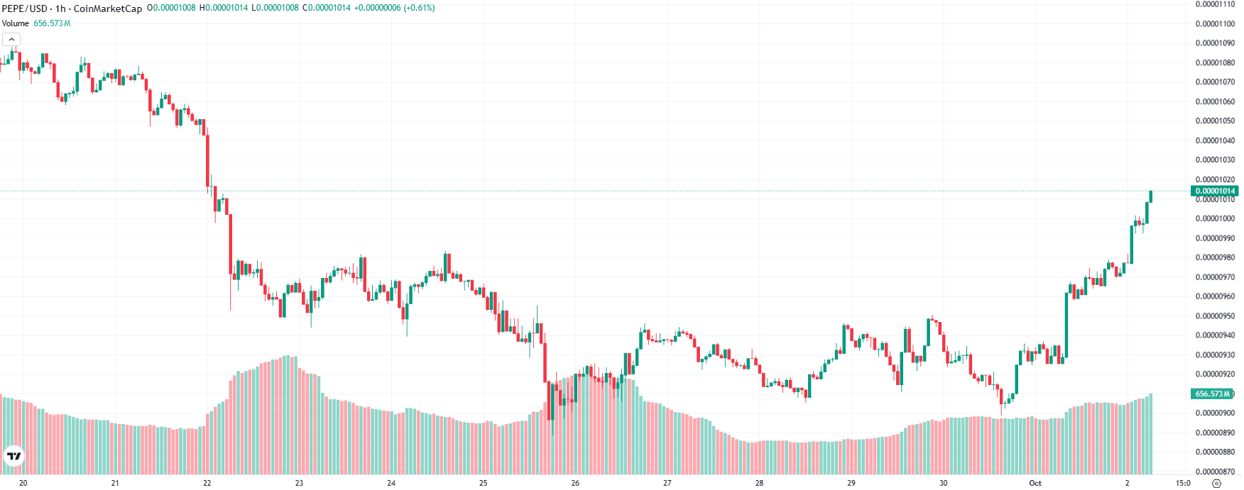 PEPE cemented its position as the third-largest meme coin with a $4 billion market cap in early October. But recent whale activity suggests volatility ahead. One institutional player garnered $2 million in PEPE over three days, while another whale withdrew 1.52 trillion tokens worth $16 million from Kraken, pushing trading volume to $665 million in a single day.