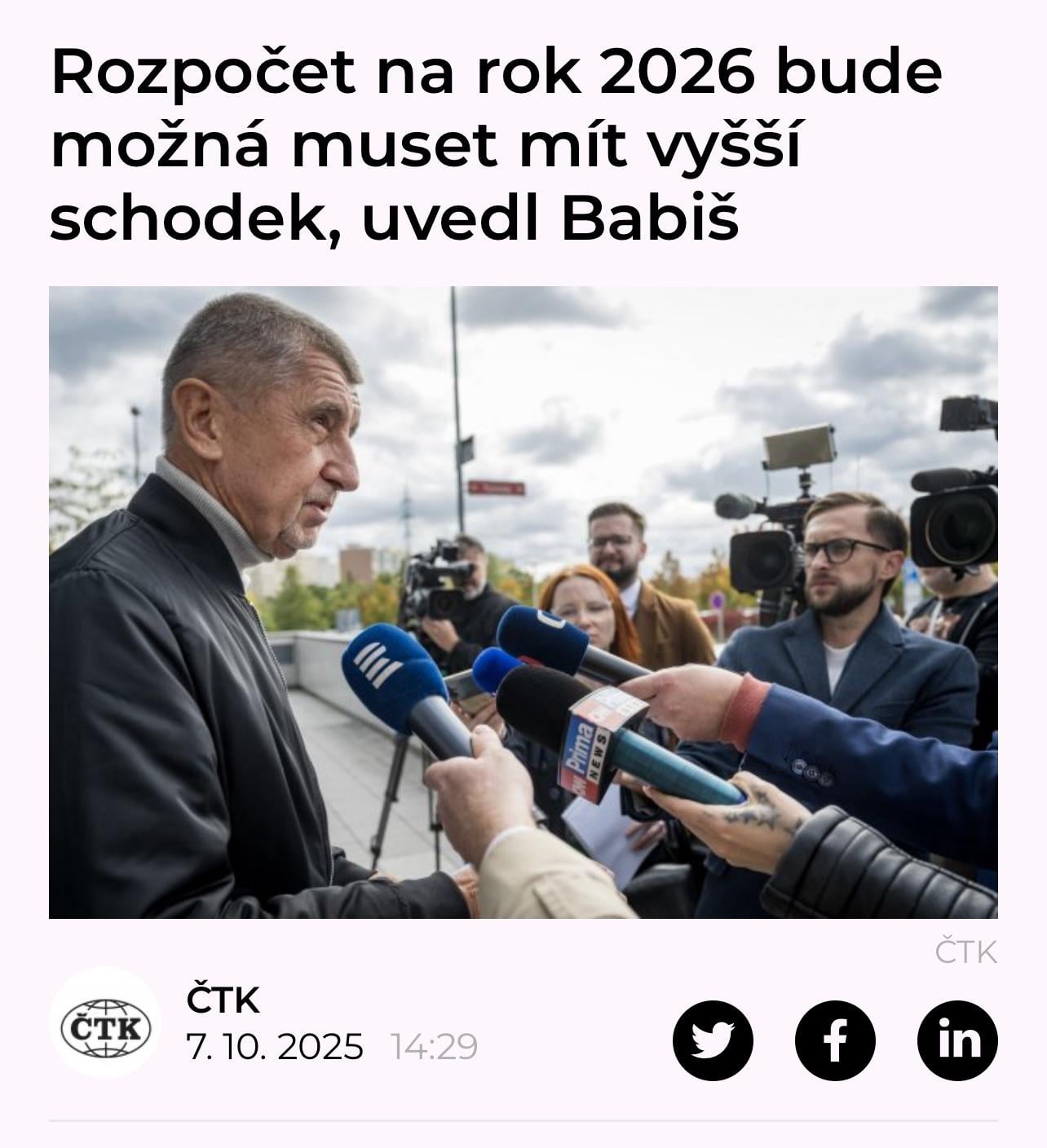 Všichni se tu honosíte inteligencí a tím jak jste věděli že Babiš poruší nějaký program a přitom jste tak hloupí že ani nevíte kdo vytvořil rozpočet pro rok 2026. A taky máte makroekonomické znalosti zelné polívky když si myslíte že rozpočet rezortů a probíhajících investic se dá z měsíce na měsíc změnit… TOHHLE NENÍ VÁŠ ÚČET “NA ZÁBAVU”. Ani malé firmy nehospodaří s rozpočty na měsíc natož stát…