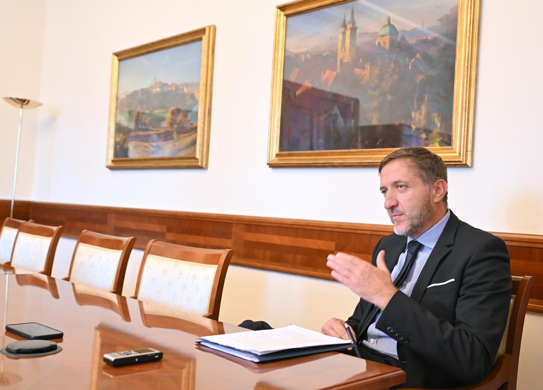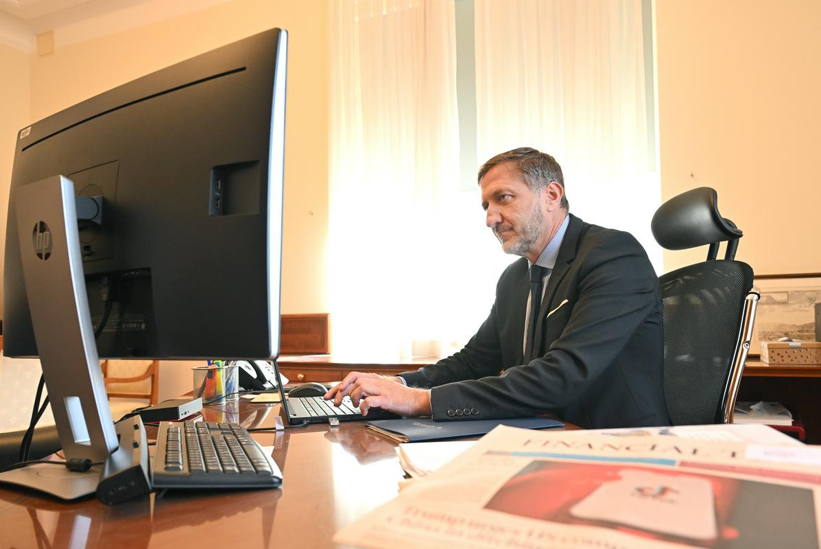 Finančni minister in podpredsednik vlade Klemen Boštjančič med pogovorom za MMC. Foto: BoBo/Žiga Živulović jr.